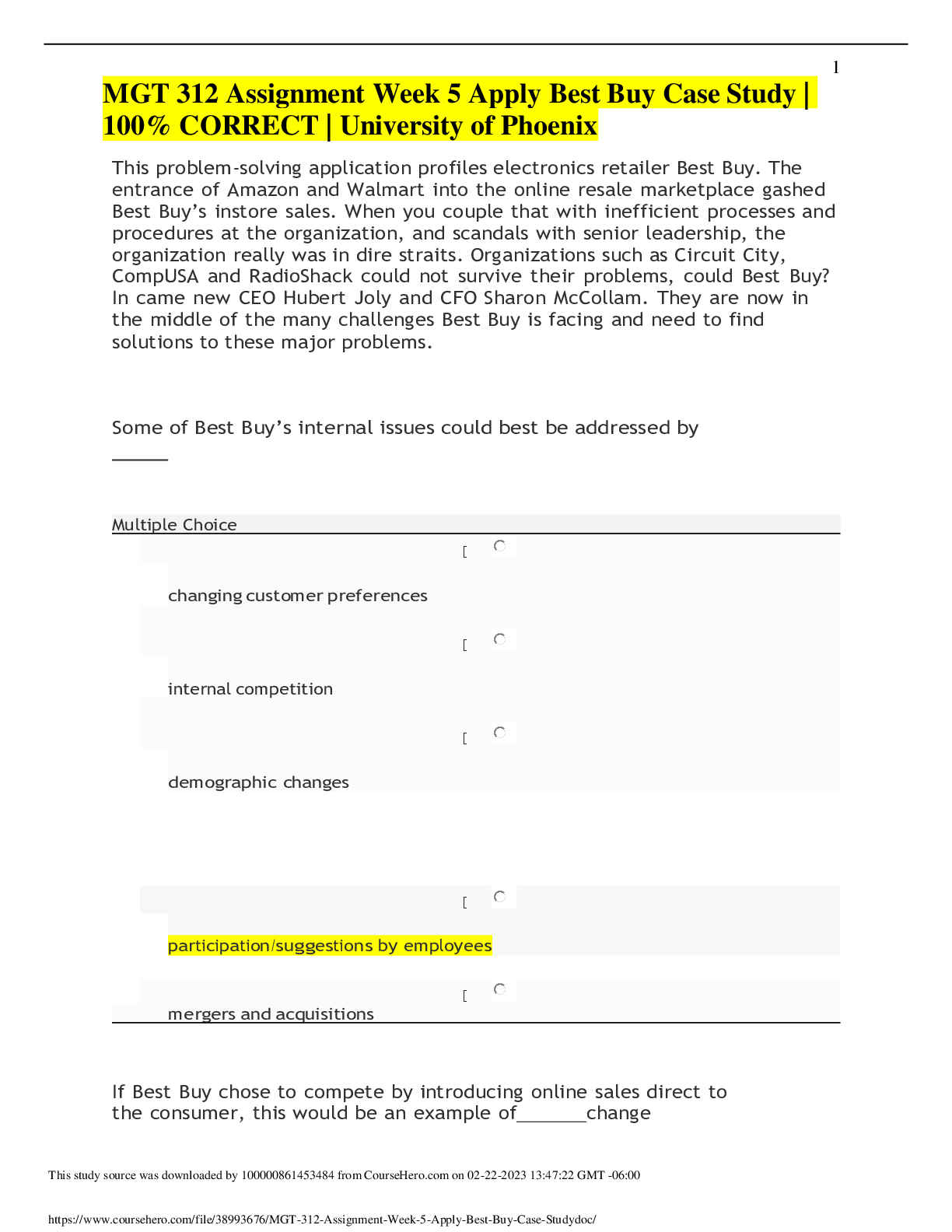 Management > CASE STUDY > MGT 312 Assignment Week 5 Apply Best Buy Case Study | 100% CORRECT | University of Phoenix (All)