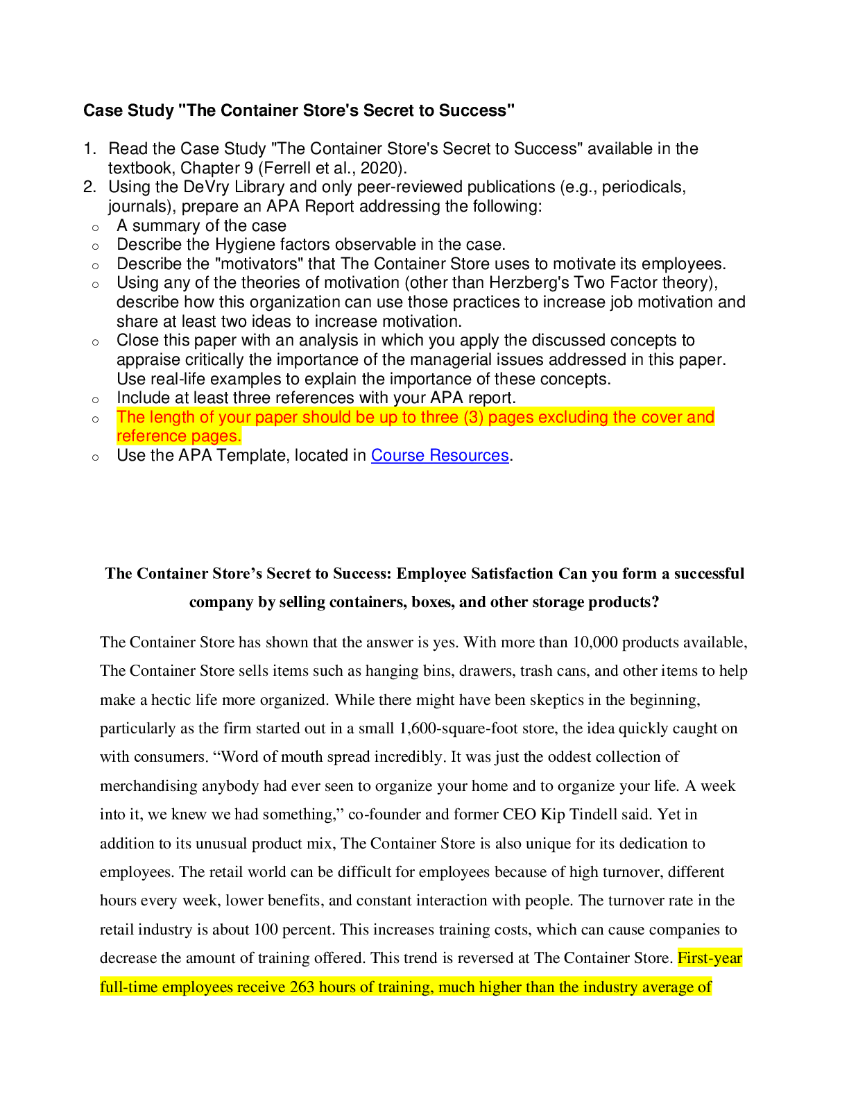 Management > CASE STUDY > Case Study "The Container Store's Secret to Success" (answered) Spring 2021 (All)