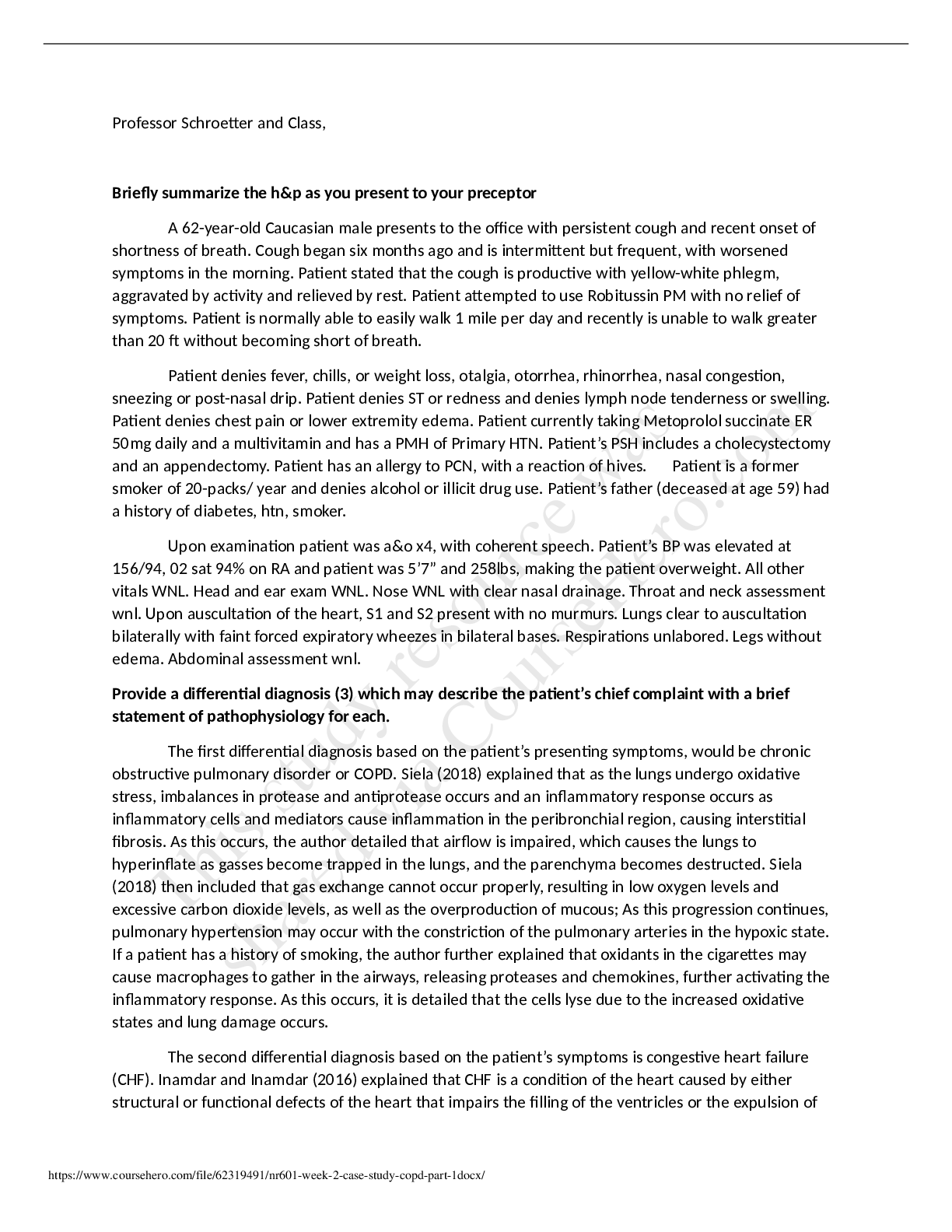 Advanced Theoretical Perspectives of Nursing > CASE STUDY > Chamberlain College of Nursing - NURSING NR 601nr601 week 2 case study copd part (All)