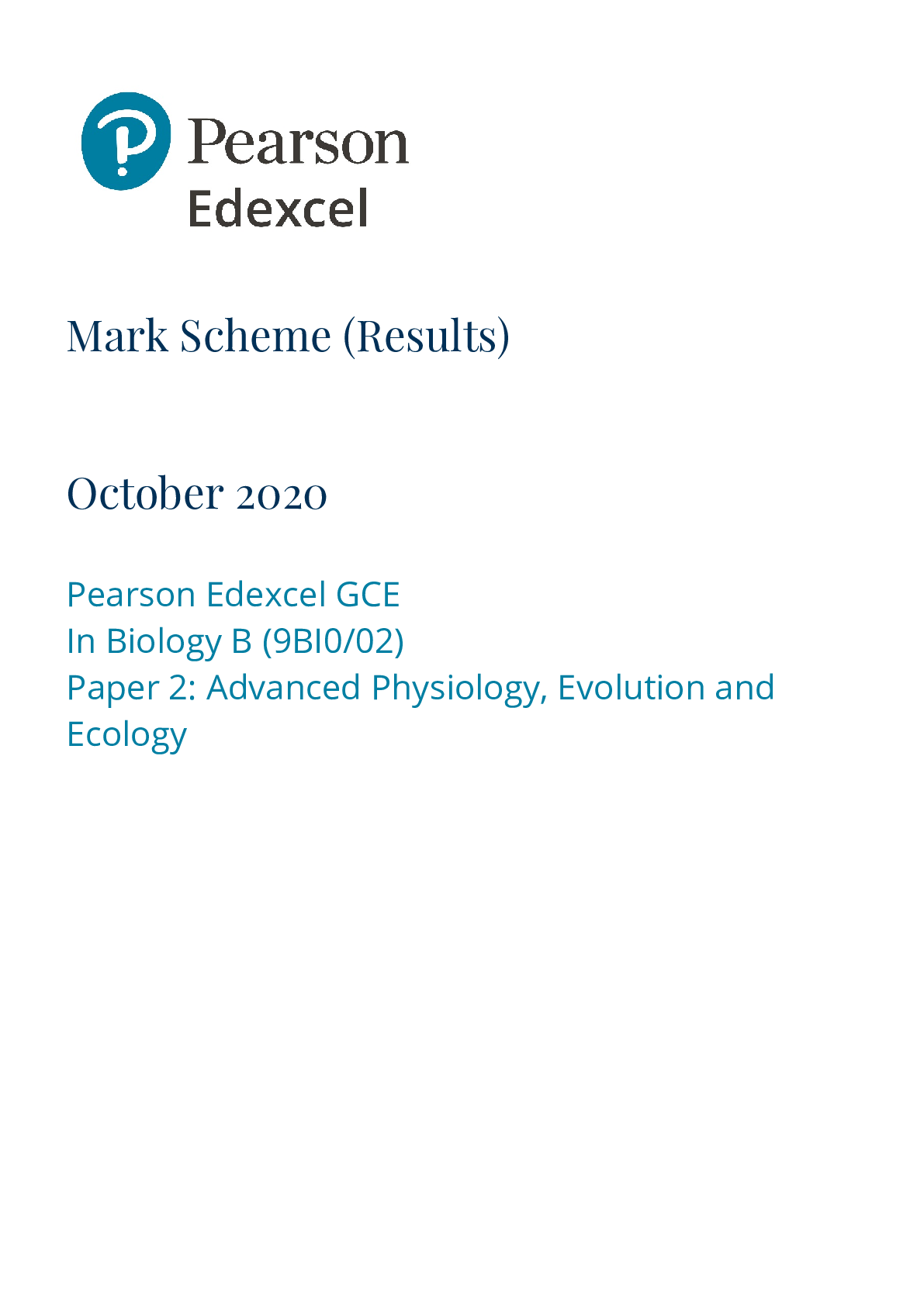 Biology > MARK SCHEMES > Pearson Edexcel GCE In Biology B (9BI0/02) Paper 2: Advanced Physiology, Evolution and Ecology Mark Scheme (Results) October 2020 (All)