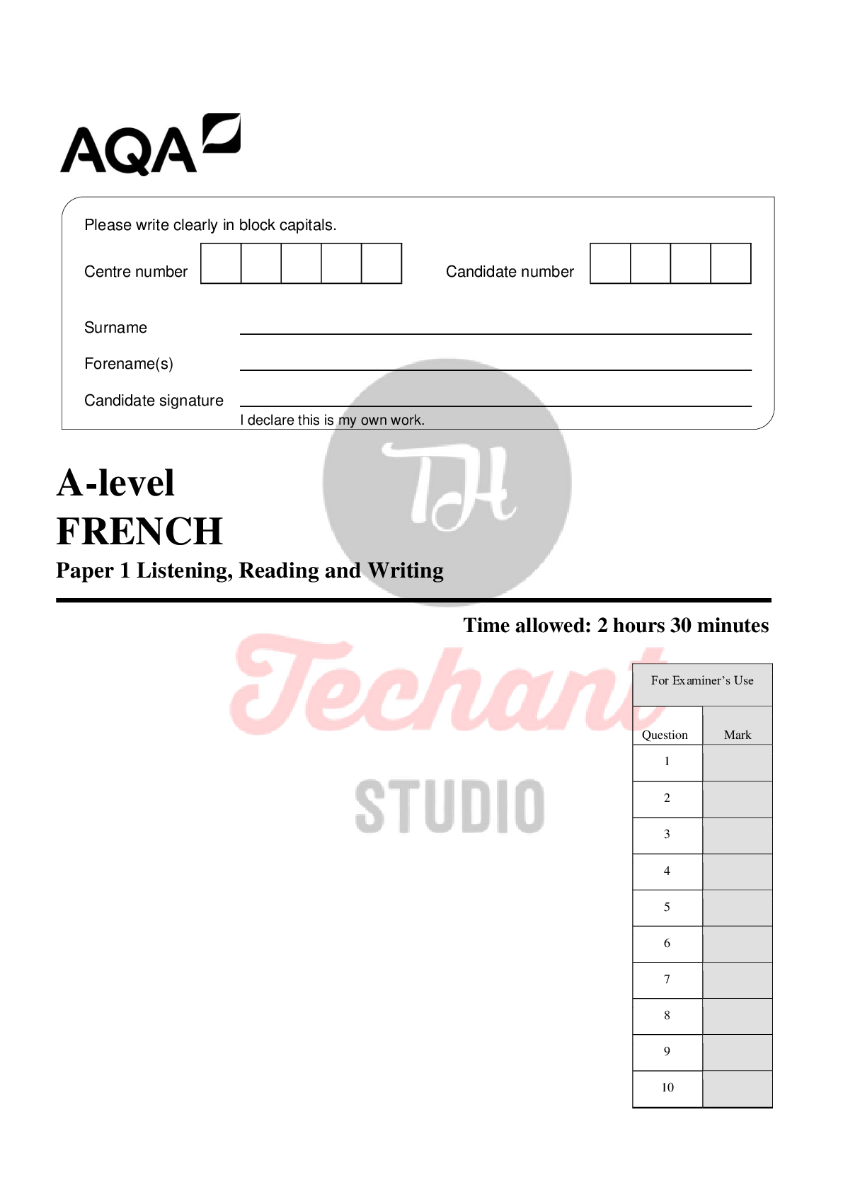French > AQA > AQA A-level FRENCH Paper 1 Listening, Reading and Writing 2021 (All)