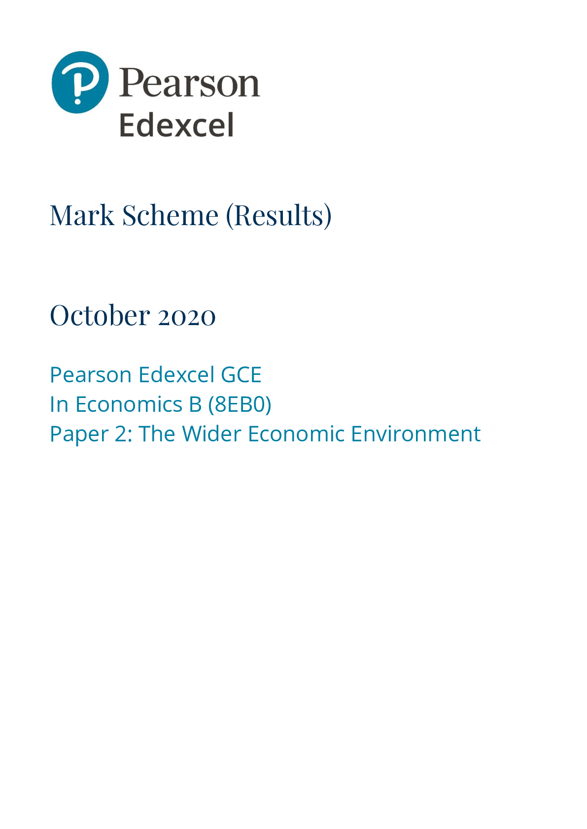 Economics > Edexcel > Pearson Edexcel GCE_Economics B_8EB0/02 Mark Scheme_2020 | The Wider Economic Environment (All)