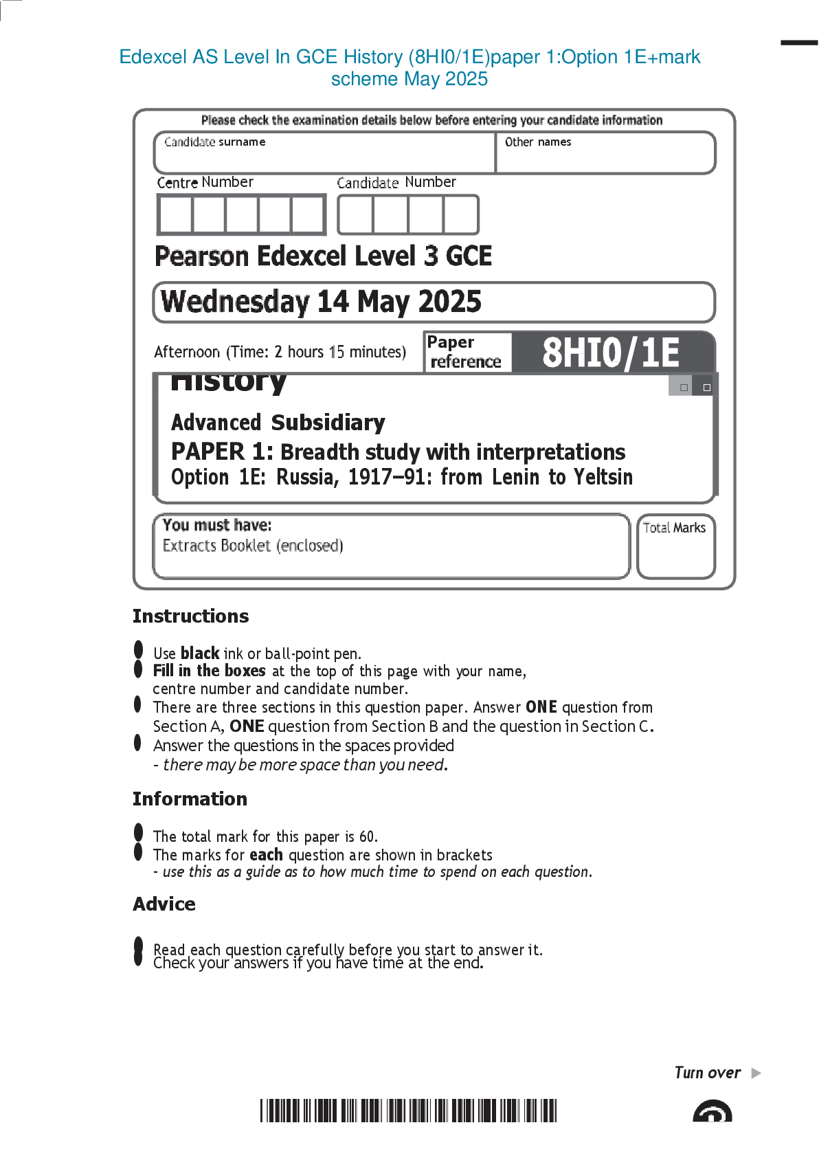 History > Edexcel > Edexcel AS Level In GCE History (8HI0/1B)paper 1 Option 1B+mark scheme May 2025 (All)