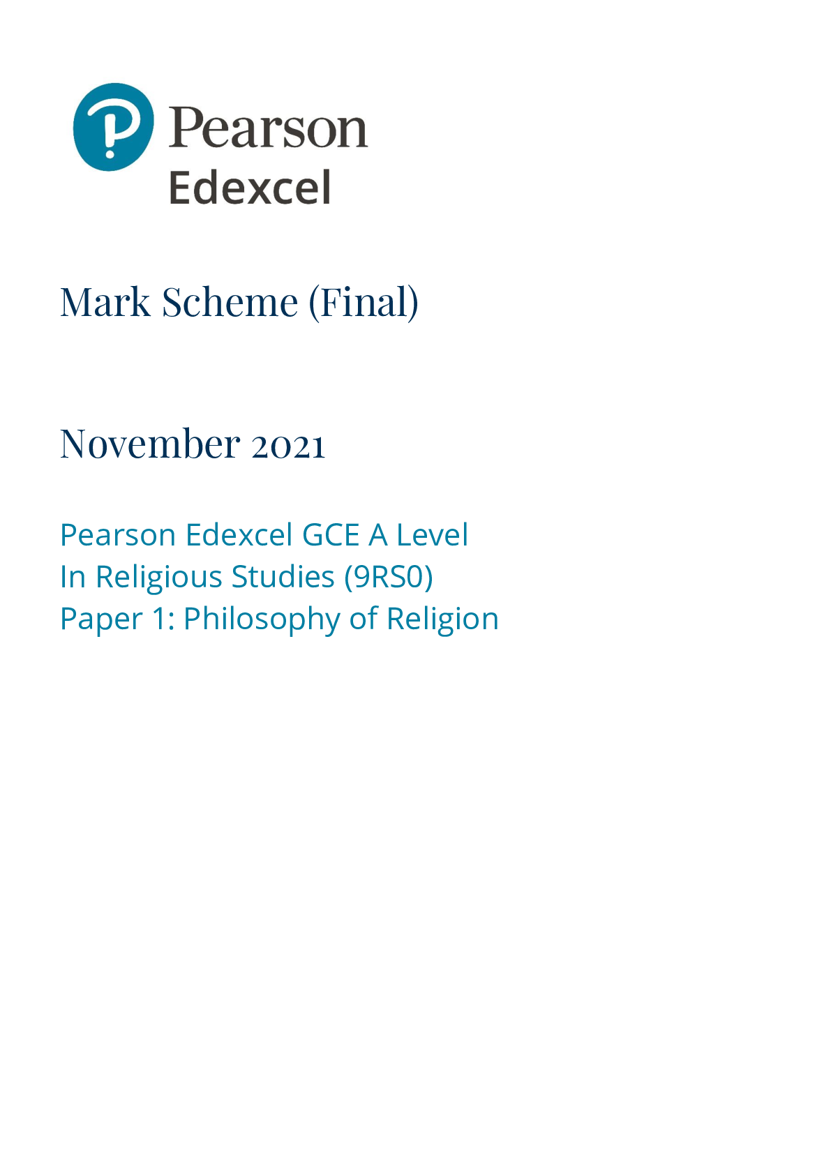 Religious Studies > Edexcel > Pearson Edexcel_Religious Studies_9RS0/01 Mark Scheme_2021 | Paper 1: Philosophy of Religion (All)
