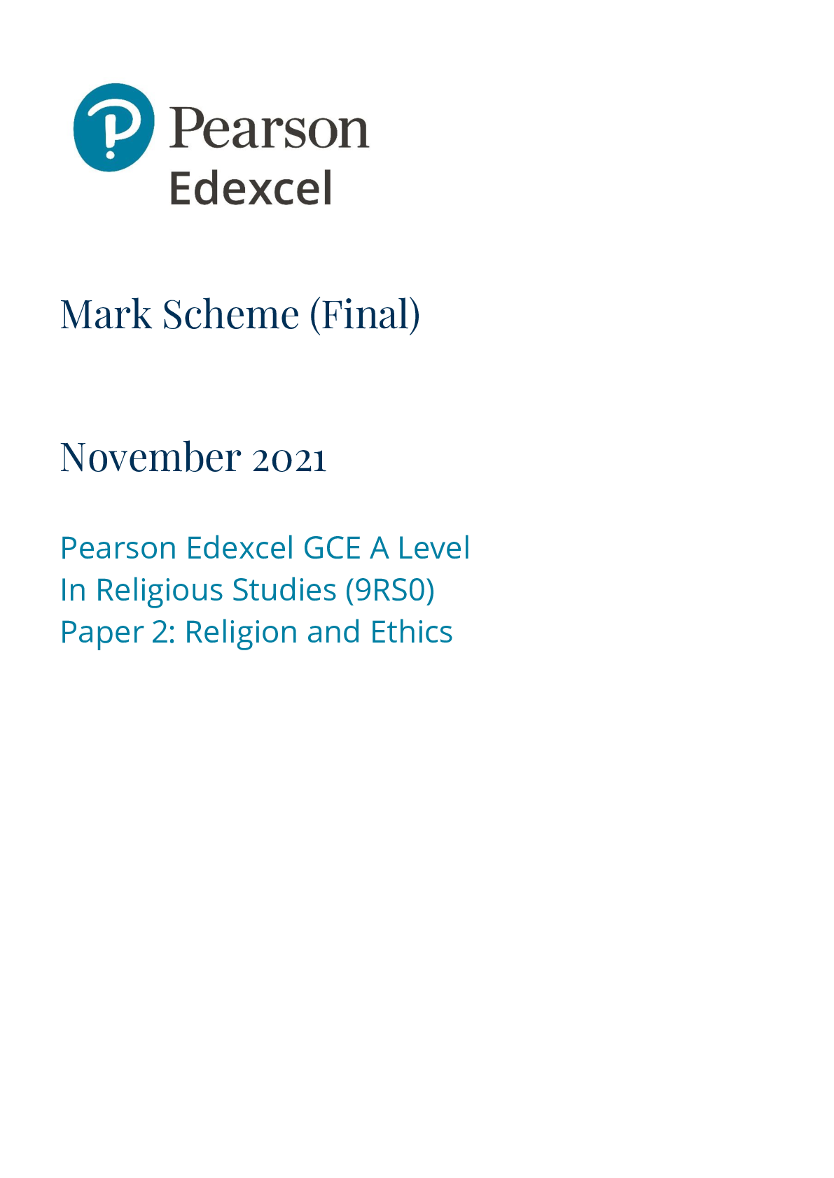 Religious Studies > Edexcel > Pearson Edexce_Religious Studies_9RS0/02 Mark Scheme_2021 | Paper 2: Religion and Ethics (All)