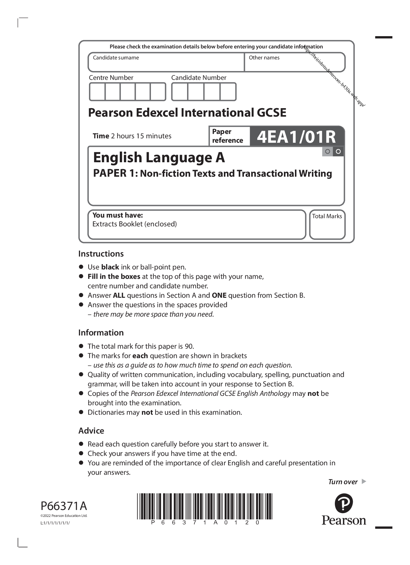 English > Edexcel > Pearson Edexcel Question paper + Mark Scheme (Results) [merged] November 2021 Pearson Edexcel International GCSE in English Language (4EA1) Paper 01 (All)