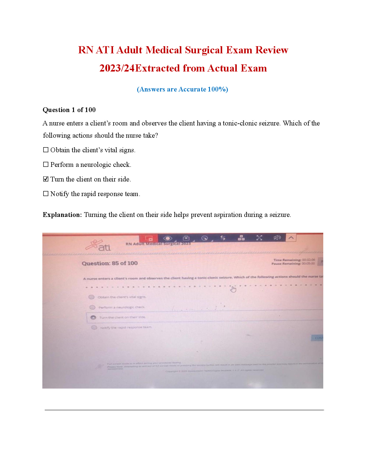 *NURSING > Other Study Resources. > ATI CRITICAL CARE FINAL EXAM (COMPLETE) (All)