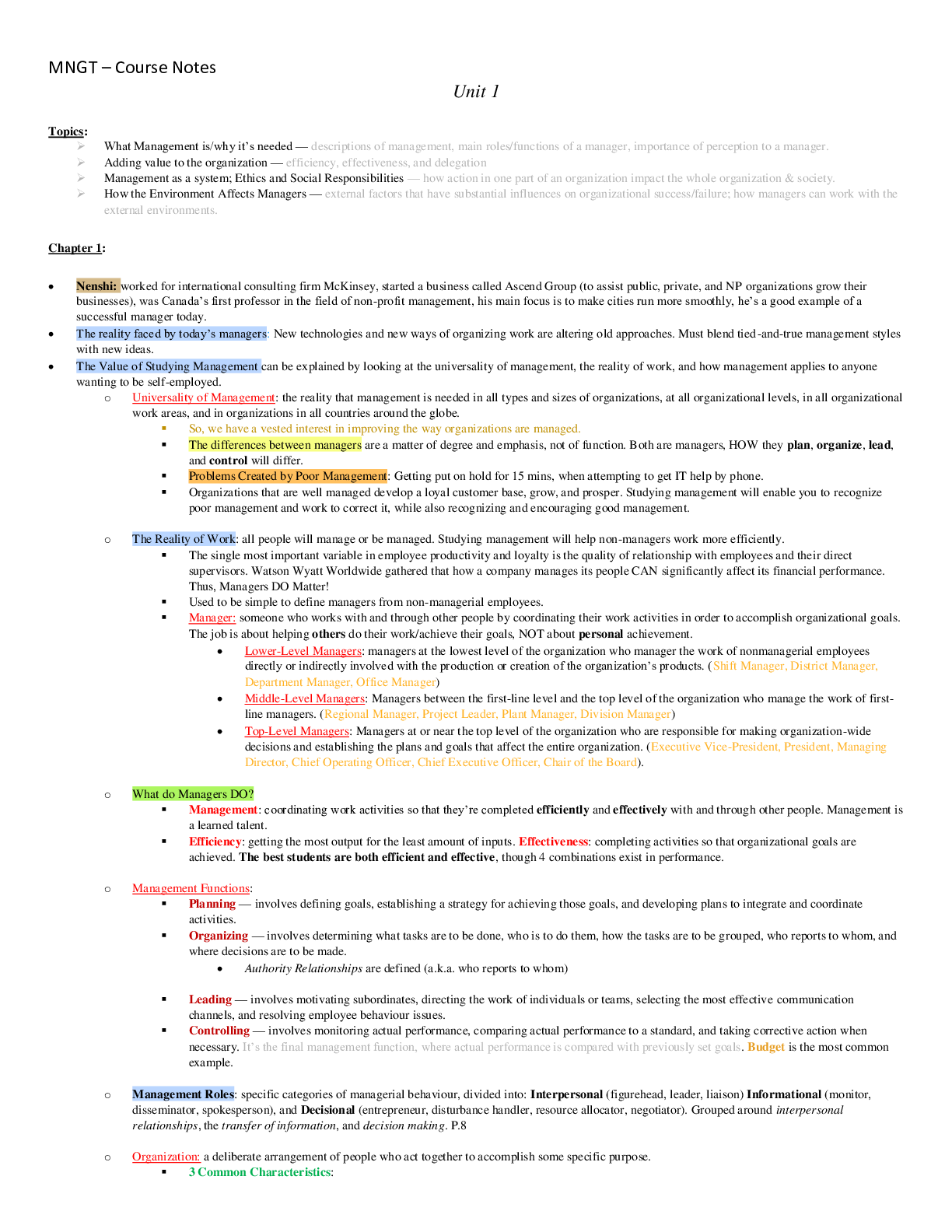 Management > Class Notes > MNGT 1211 MNGT___Course_Notes..study guide with All the information you need for the exam revision. (All)