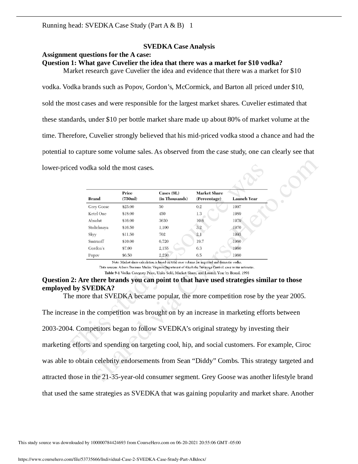 Marketing > Class Notes > MKT 5255 Individual Case 2 - SVEDKA Case Study (Part A&B) (All)