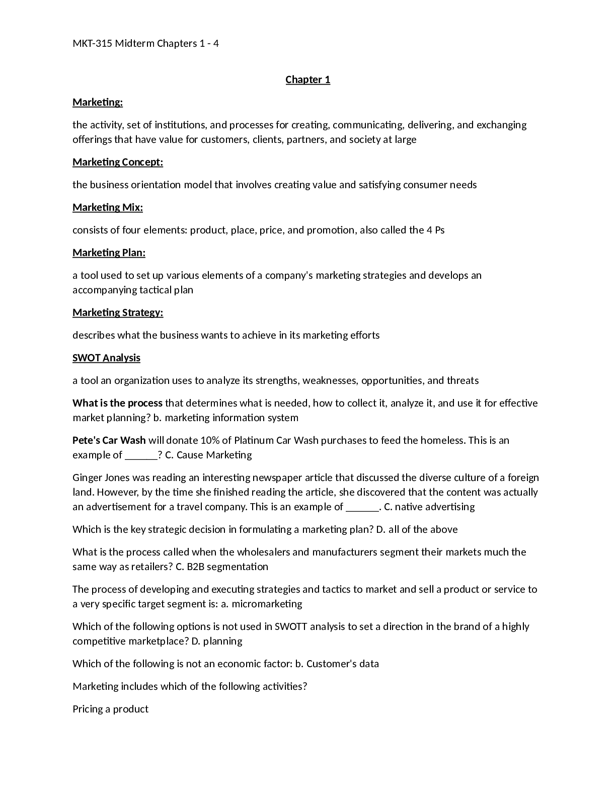 Marketing > Class Notes > MKT-315 Midterm Chapters 1 - 4 (All)
