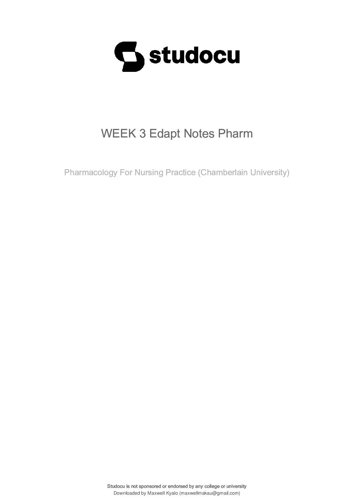 Health Care > Class Notes > Pharmacology For Nursing Practice (NR-293) WEEK 3 Edapt Notes Pharm (All)
