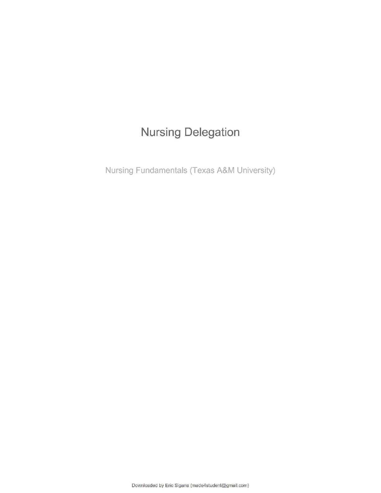 *NURSING > Class Notes > NURS 421 | Nursing Delegation | Leadership & Management Study Guide (All)