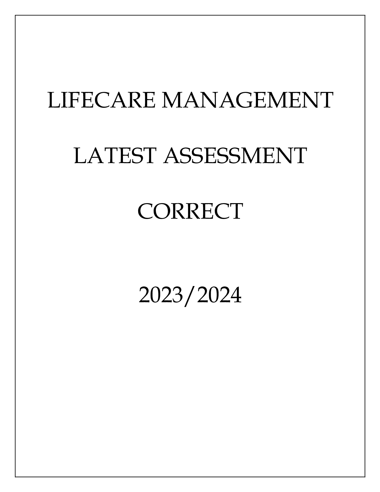 *NURSING > ESSAY > LIFECARE MANAGEMENT LATEST ASSESSMENT CORRECT 20232024 (All)