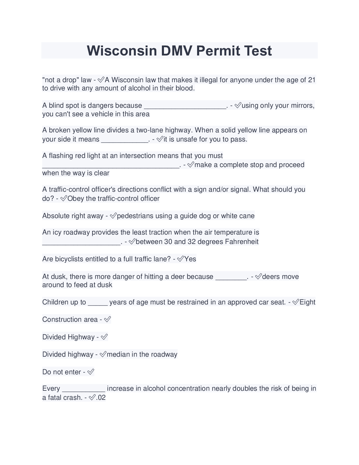 Engineering > ESSAY > Wisconsin DMV Permit Test (Latest 2022/2023) Verified Answers by Expert (All)
