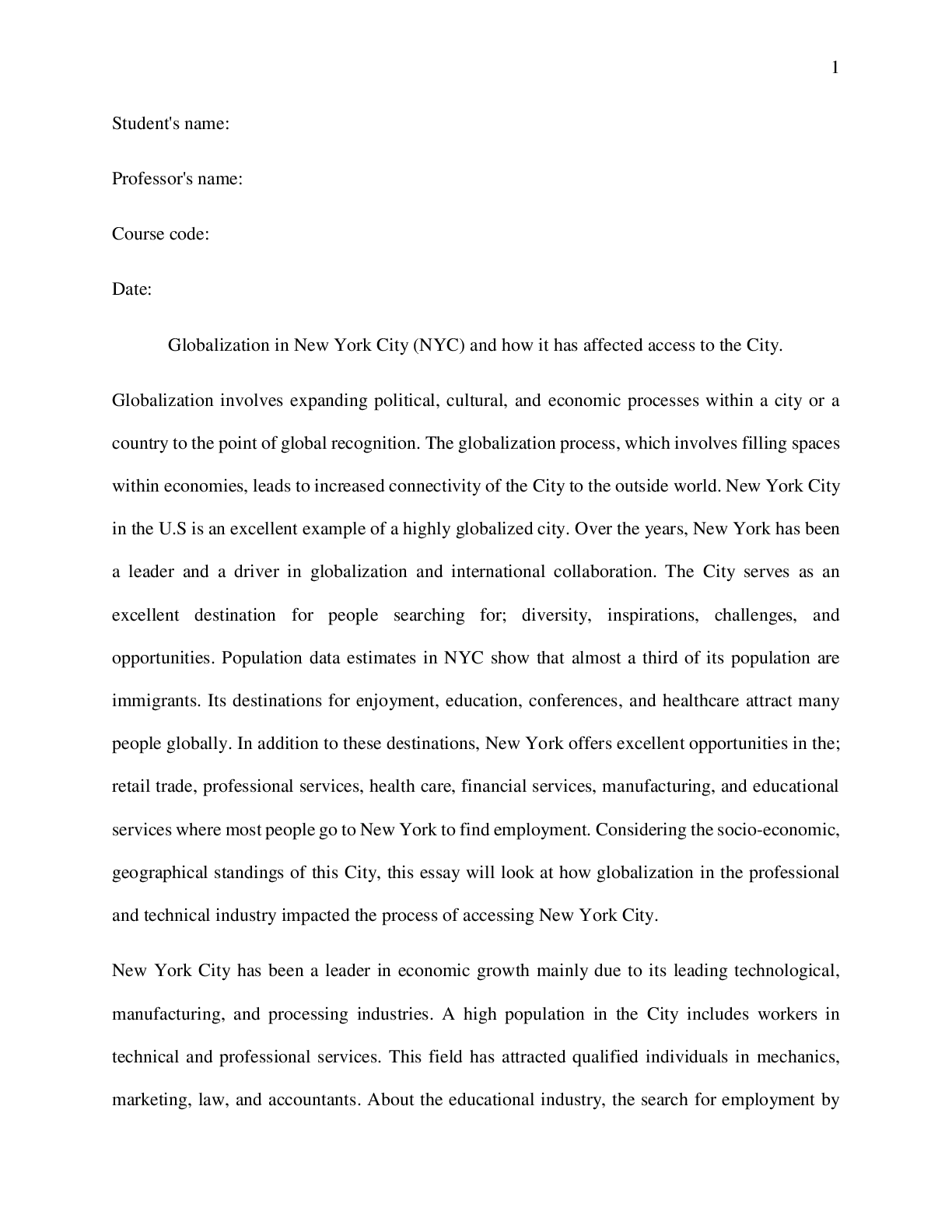 Geography > ESSAY > Globalization in New York City (NYC) and how it has affected access to the City. (All)