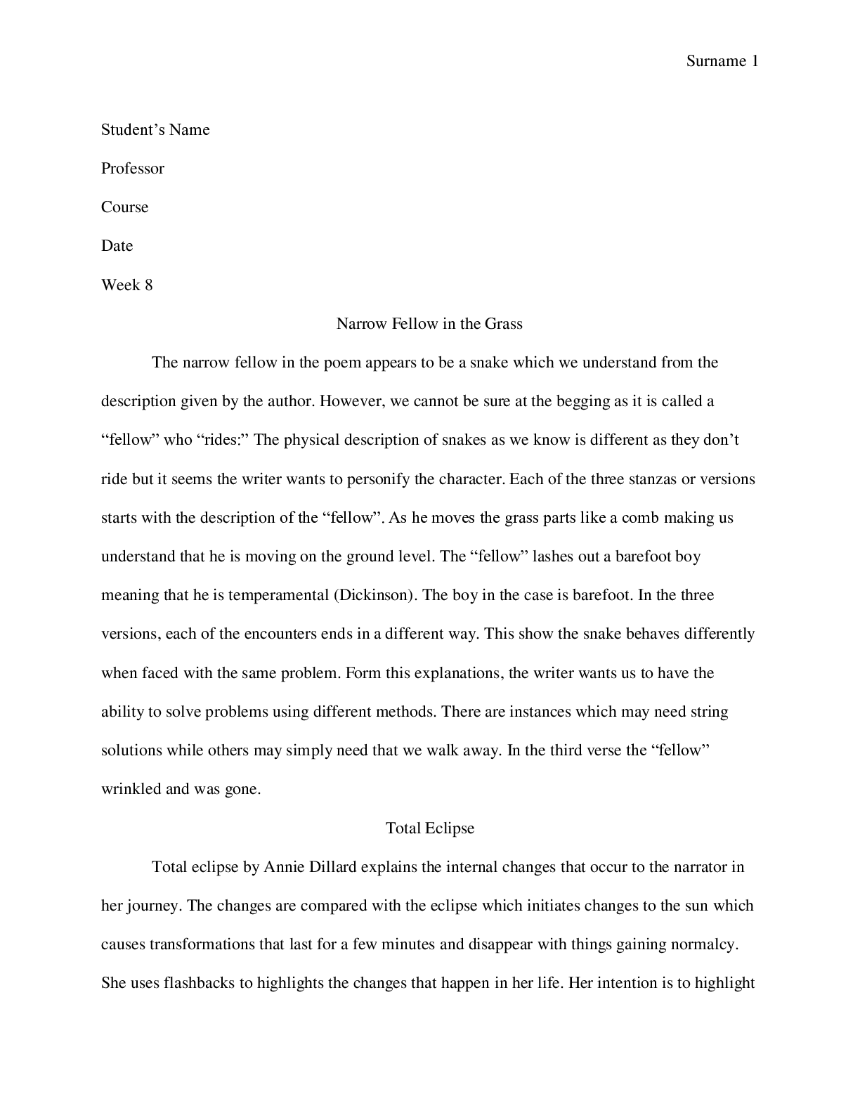 Literary Studies > ESSAY > Narrow fellow in the grass and other poems reflections (All)