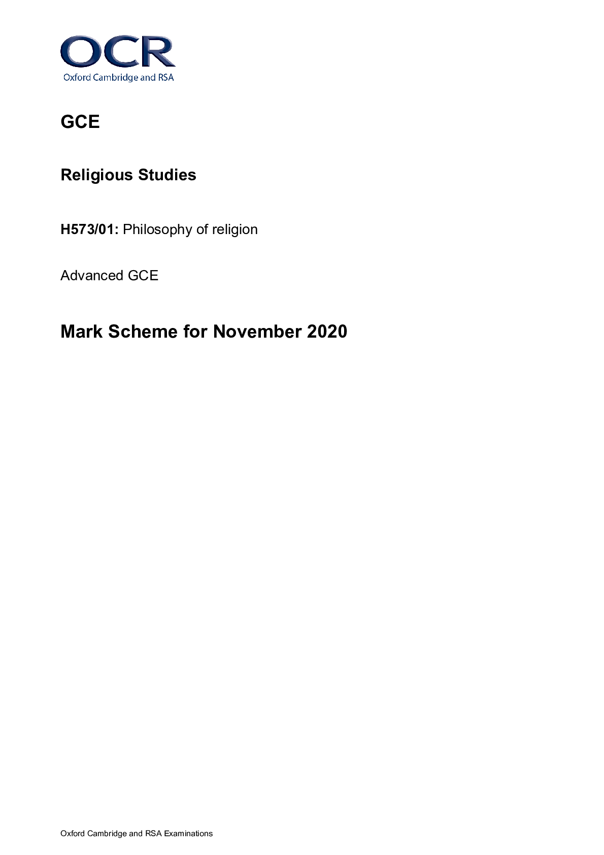 Religious Studies > A/As Level Mark Scheme > A Level Religious Studies _H573/01 Mark Scheme Nov 2020 | Philosophy of Religion (All)