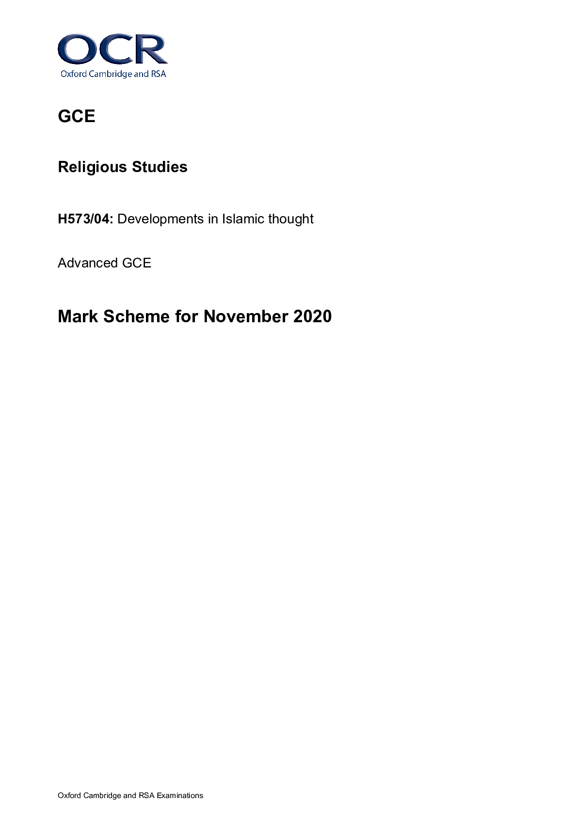 Religious Studies > A/As Level Mark Scheme > A Level Religious Studies _H573/04 Mark Scheme Nov 2020 | Developments in Islamic Thought (All)