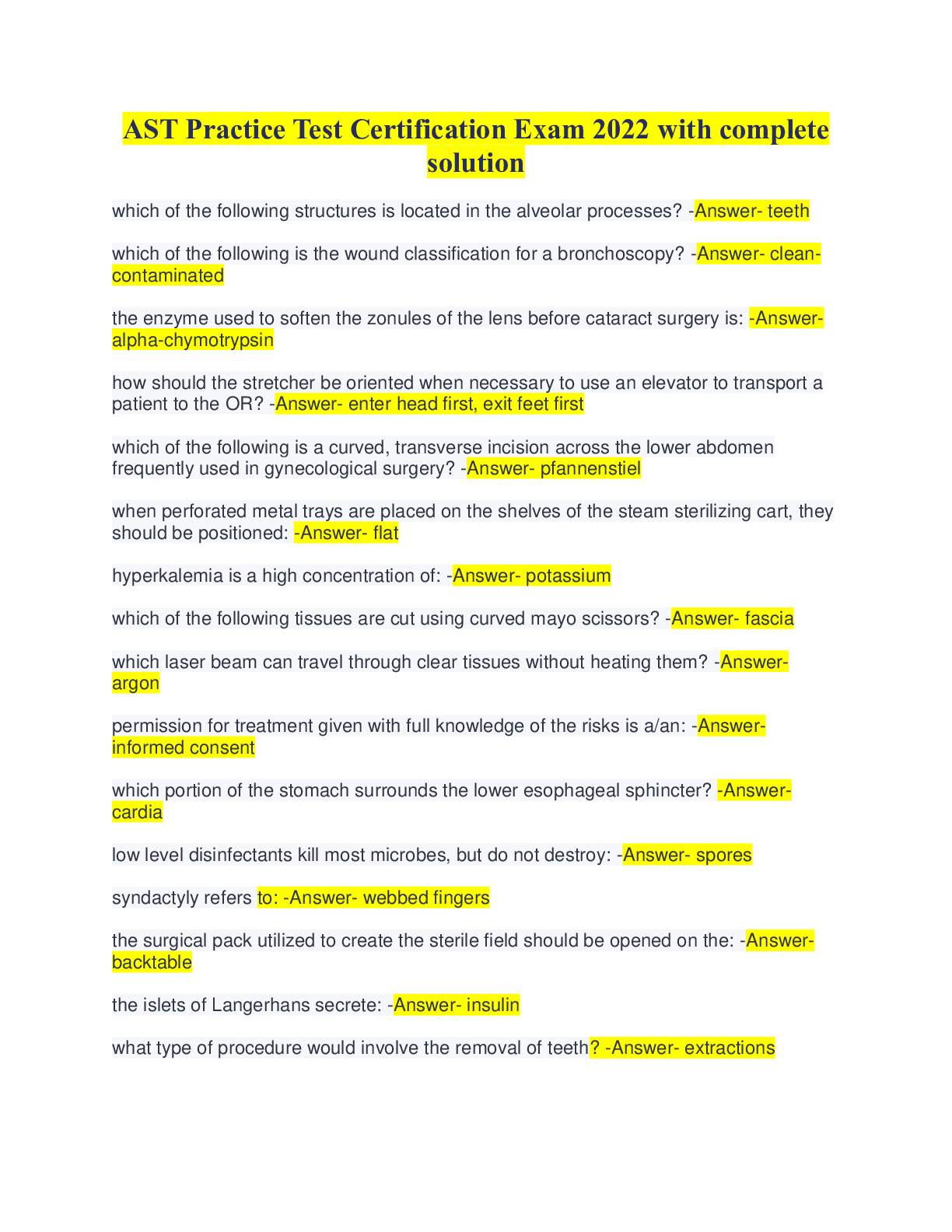 Medicine > Test Prep > AST Practice Test Certification Exam 2022 with complete solution (All)