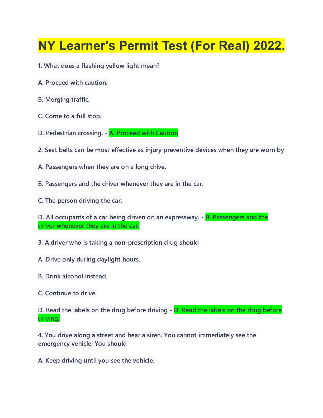 Driving Course > Test Prep > NEW YORK/ NY Learner's Permit Test (For Real) 2022. (All)