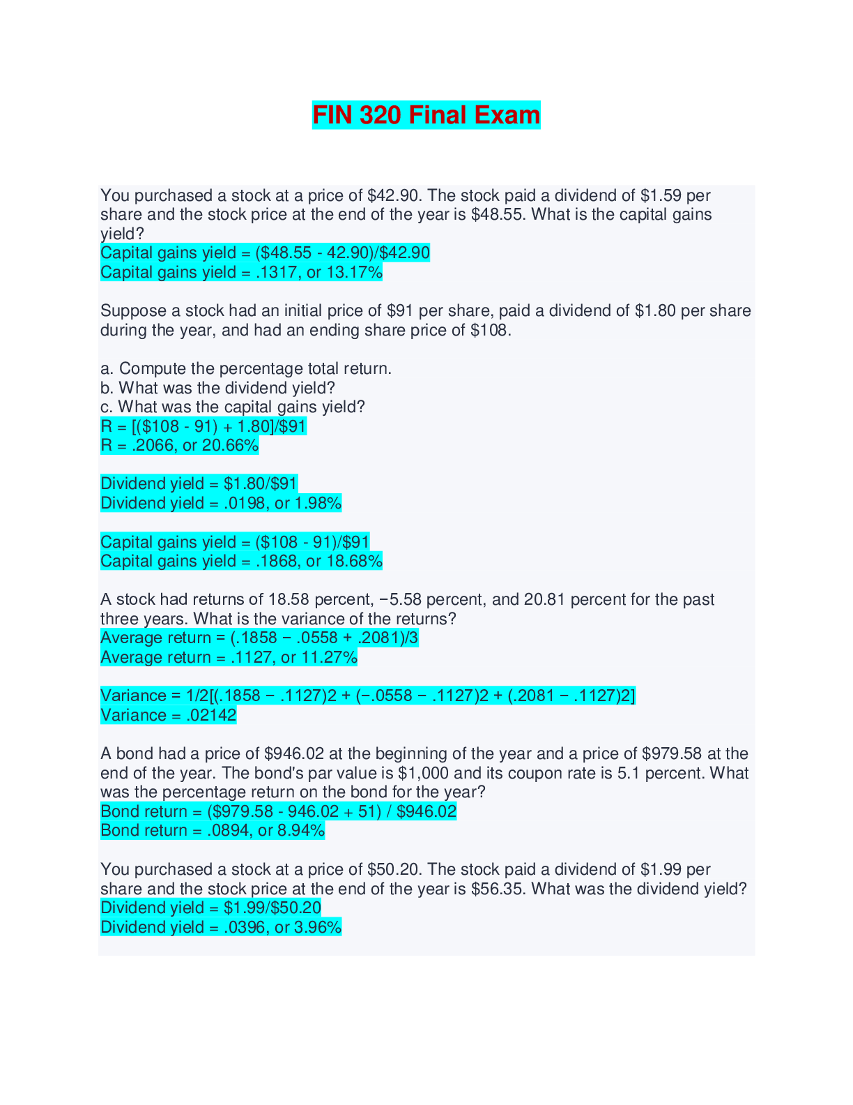 Finance > EXAM > FIN 320 Final Exam - Questions with 100% Correct Answers (All)