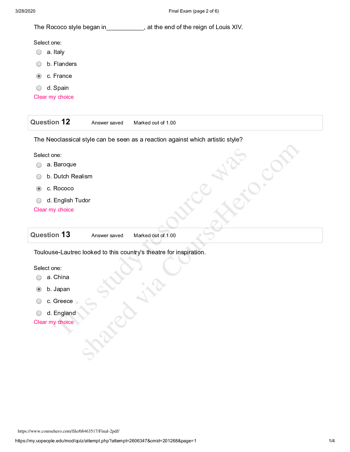 Art > EXAM > AHIST 1401 Arts_History_Self_Quizzes_TEST BANK_2020 | TEST BANK _ AHIST1401 Self_Quizzes_Arts_History_100% (All)