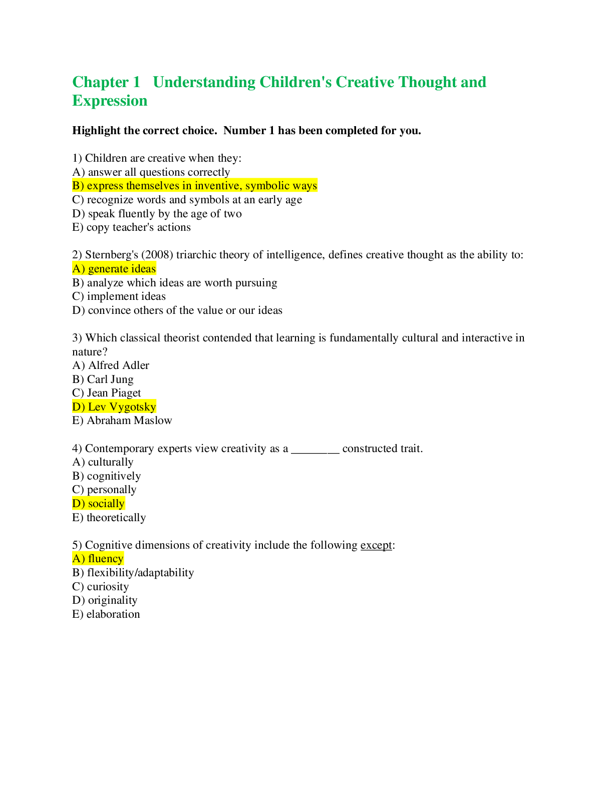 Art > EXAM > Chapter 1 Understanding Children's Creative Thought and Expression Questions And Answers (Complete Guide) (All)