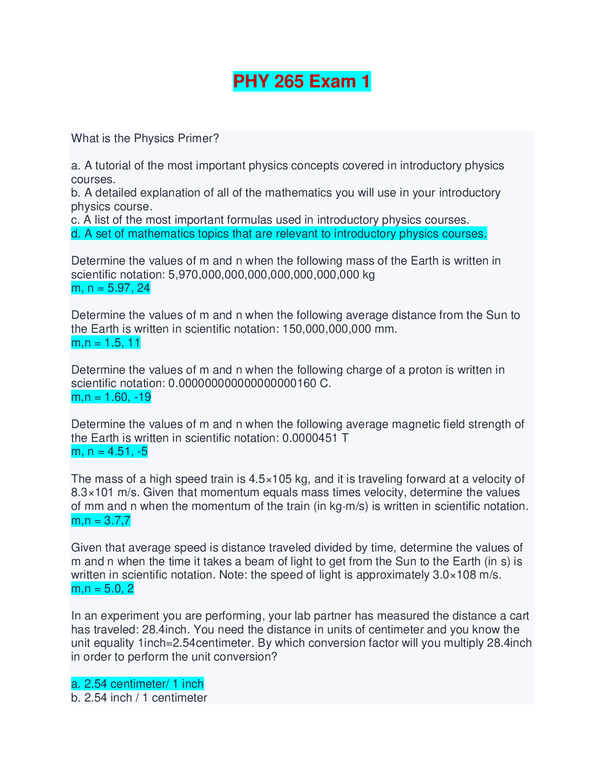 Physics > FINAL EXAM > PHYSICS LAB FINAL EXAM 2024-2025 UPDATED QUESTIONS AND VERIFIED ANSWERS GRADED A+ (All)