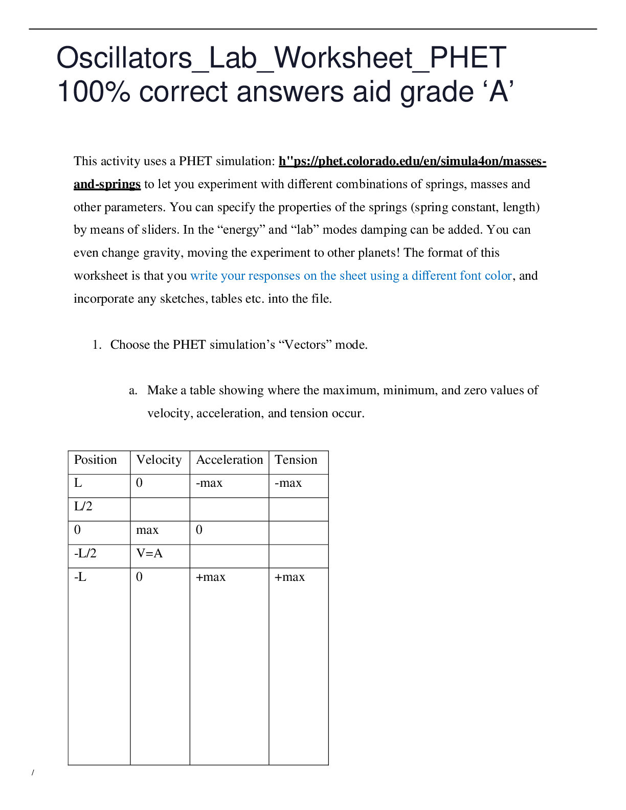 Physics > Lab Report > Oscillators_Lab_Worksheet_PHET 100% correct answers aid grade ‘A’ (All)