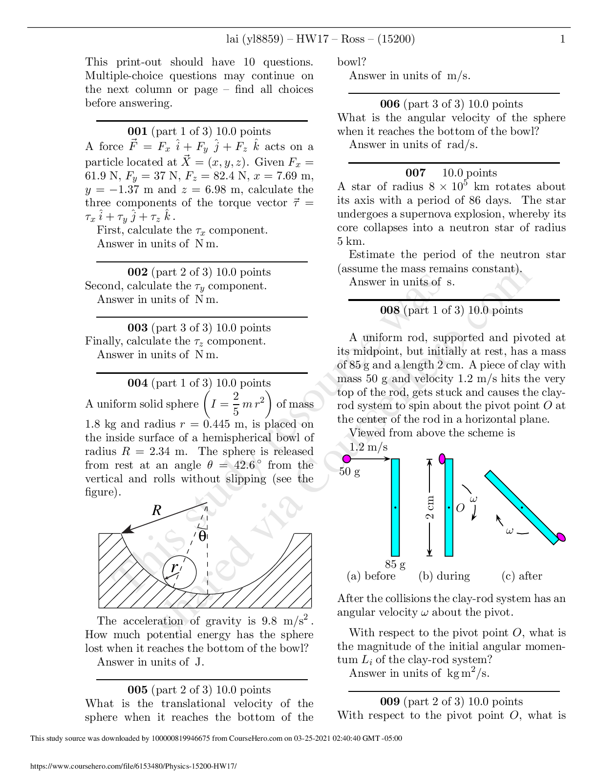 Physics > STUDY GUIDE > Worcester - PH 1010Problem%20Set%20#2 (All)