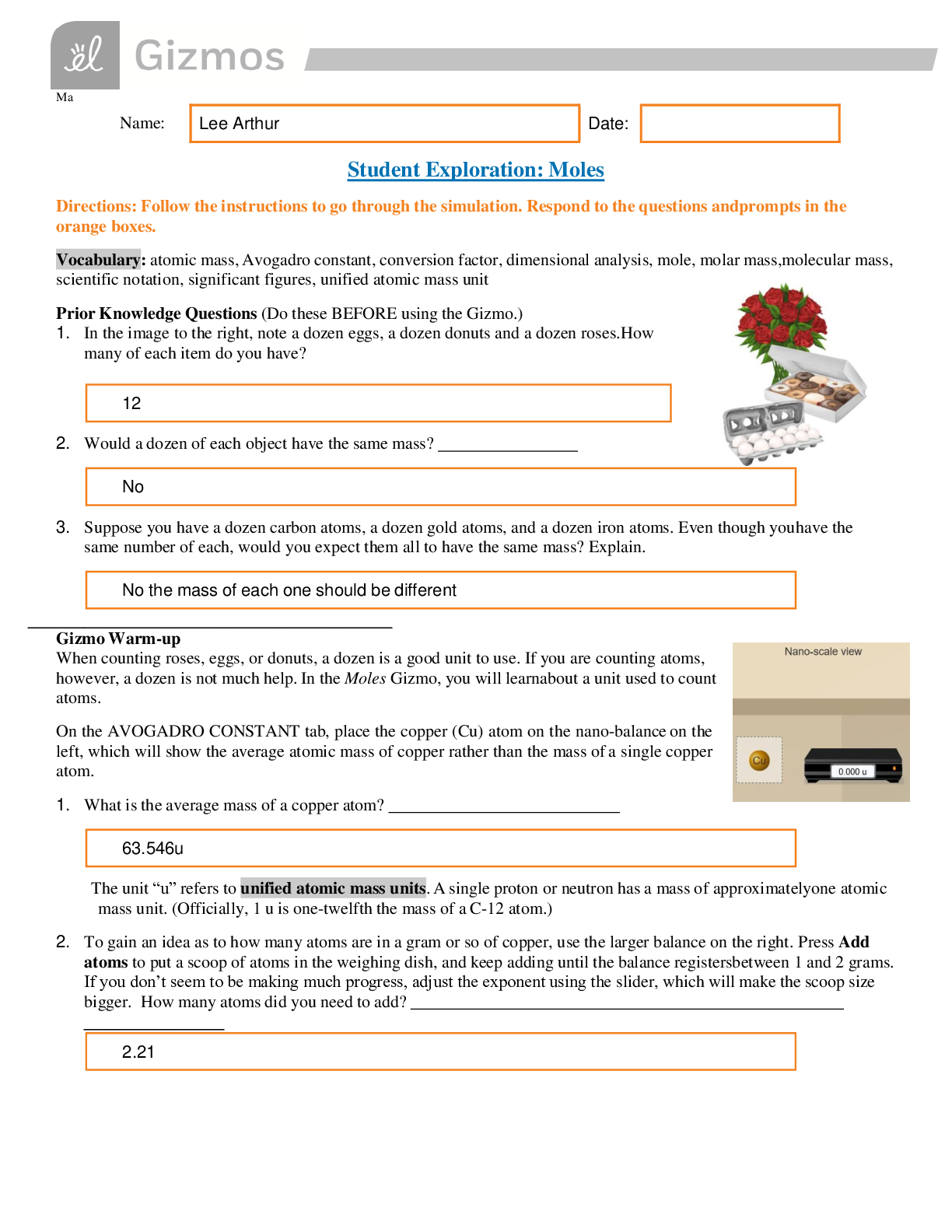 Physics > EXAM > Gizmos Student Exploration: Moles Answer Key (All)