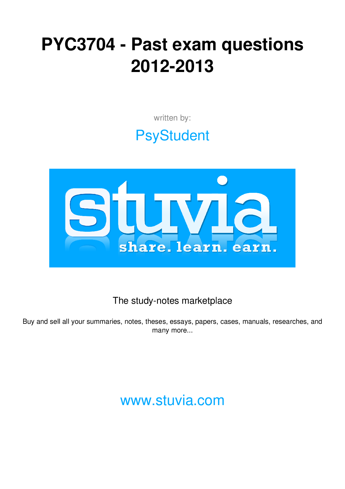 Physics > QUESTIONS & ANSWERS > PYC3704 - Past exam questions 2012-2013 (All)