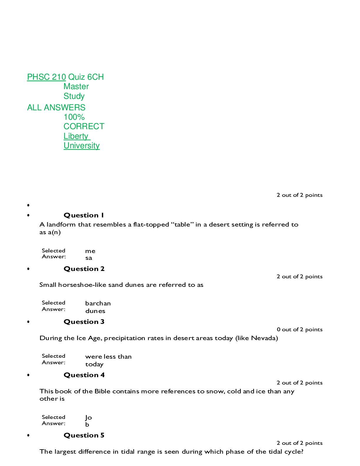 Physics > QUESTIONS & ANSWERS > PHSC 210 Quiz 6CH Master Study ALL ANSWERS 100% CORRECTLiberty University (All)