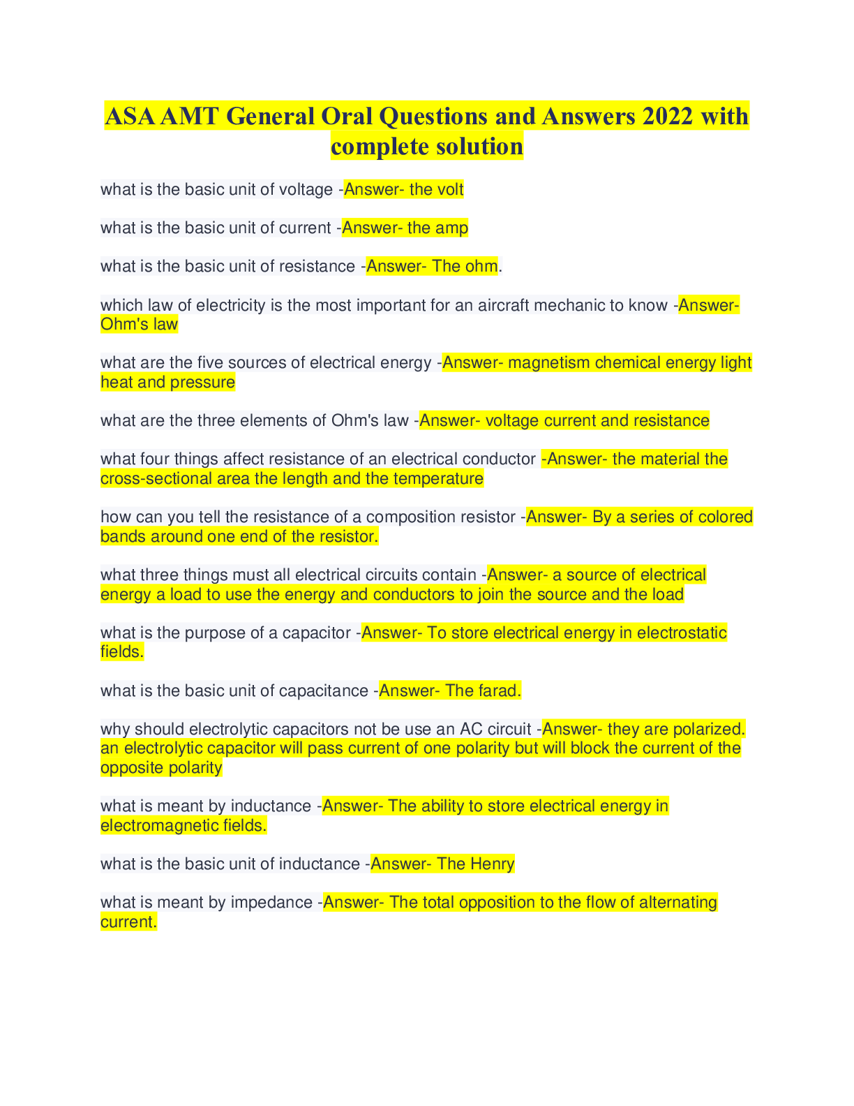Physics > QUESTIONS & ANSWERS > ASA AMT General Oral Questions and Answers 2022 with complete solution (All)