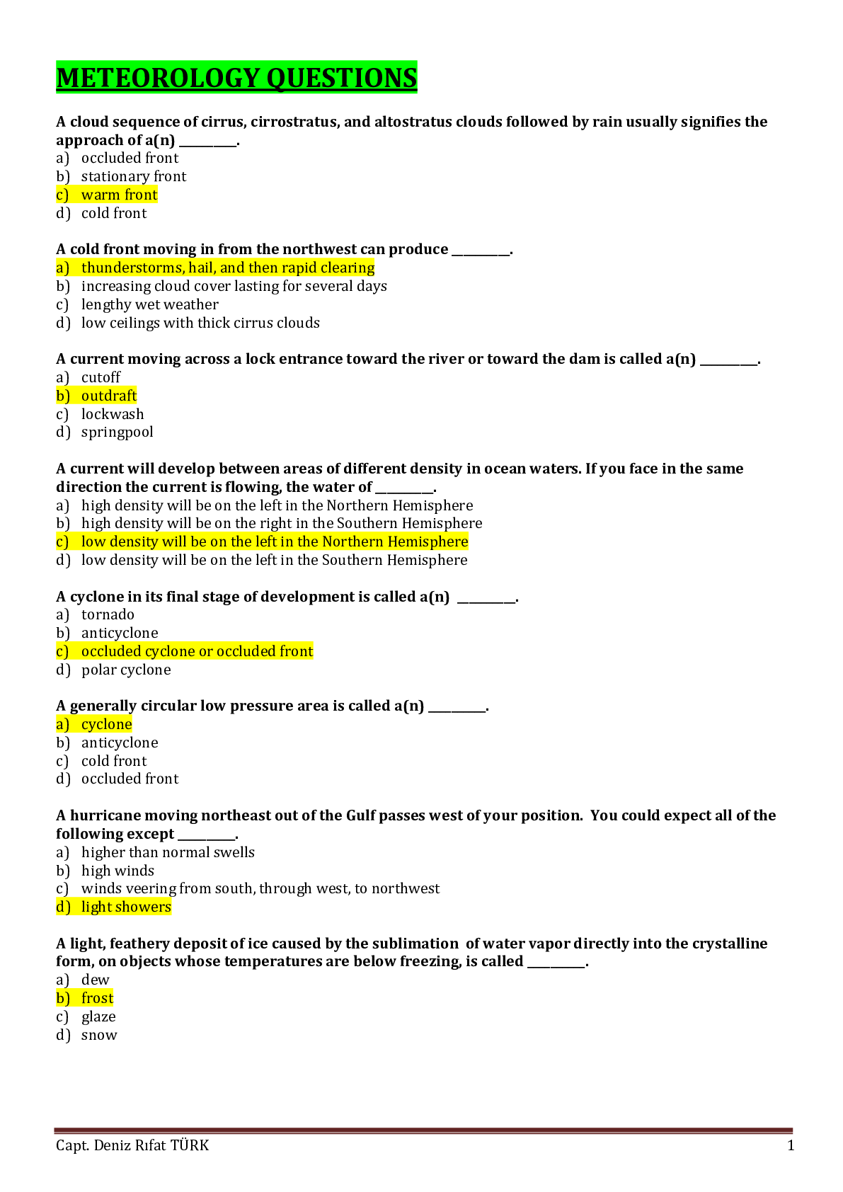 Statistics > EXAM > Meteorology Questions latest update 2021(A+ level questions with the correct answers) (All)