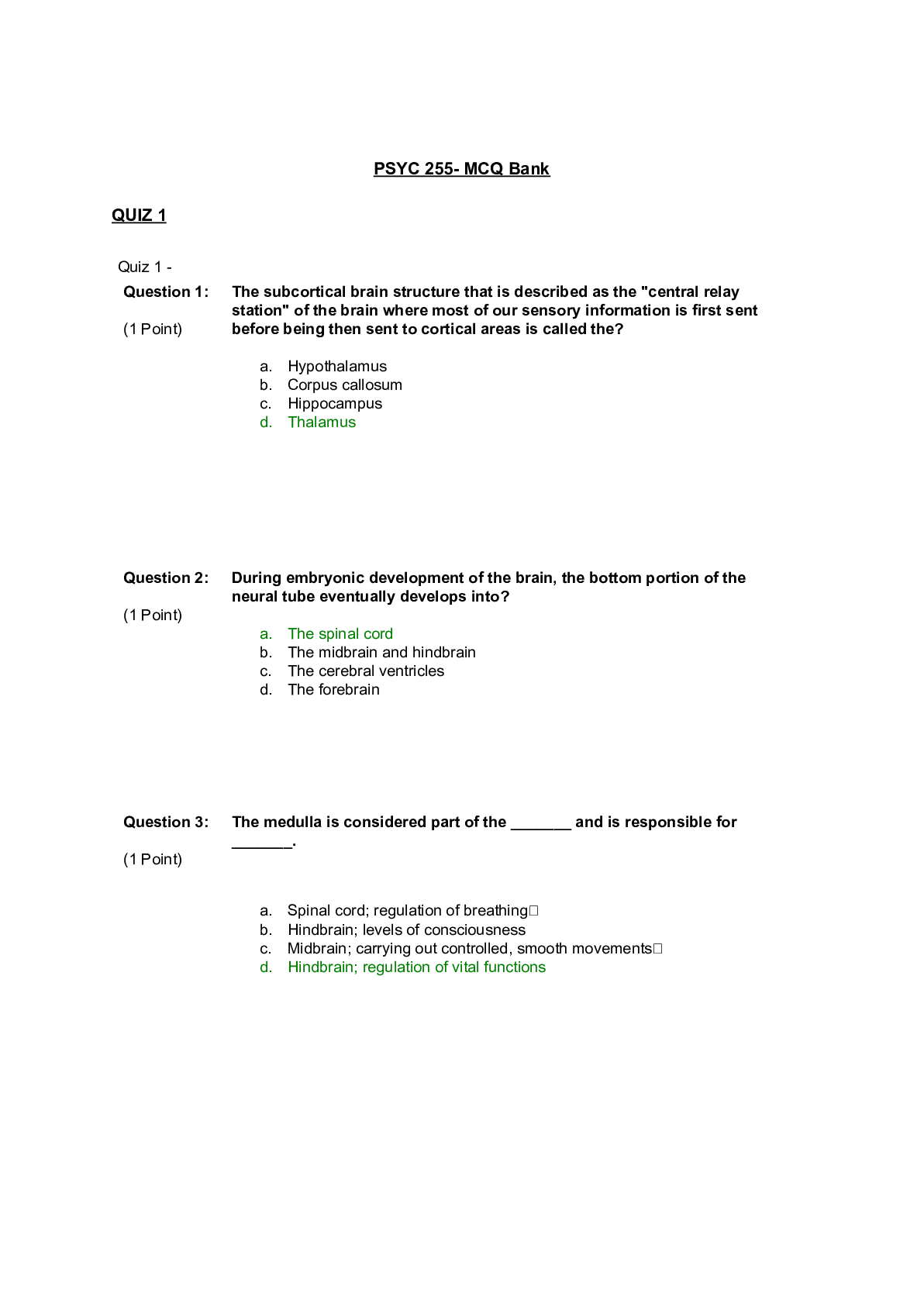 Physiology > AQA QUESTION and MARK SCHEMES > Concordia University ( PSYC 255 ) updated psychology quiz for A+ (All)