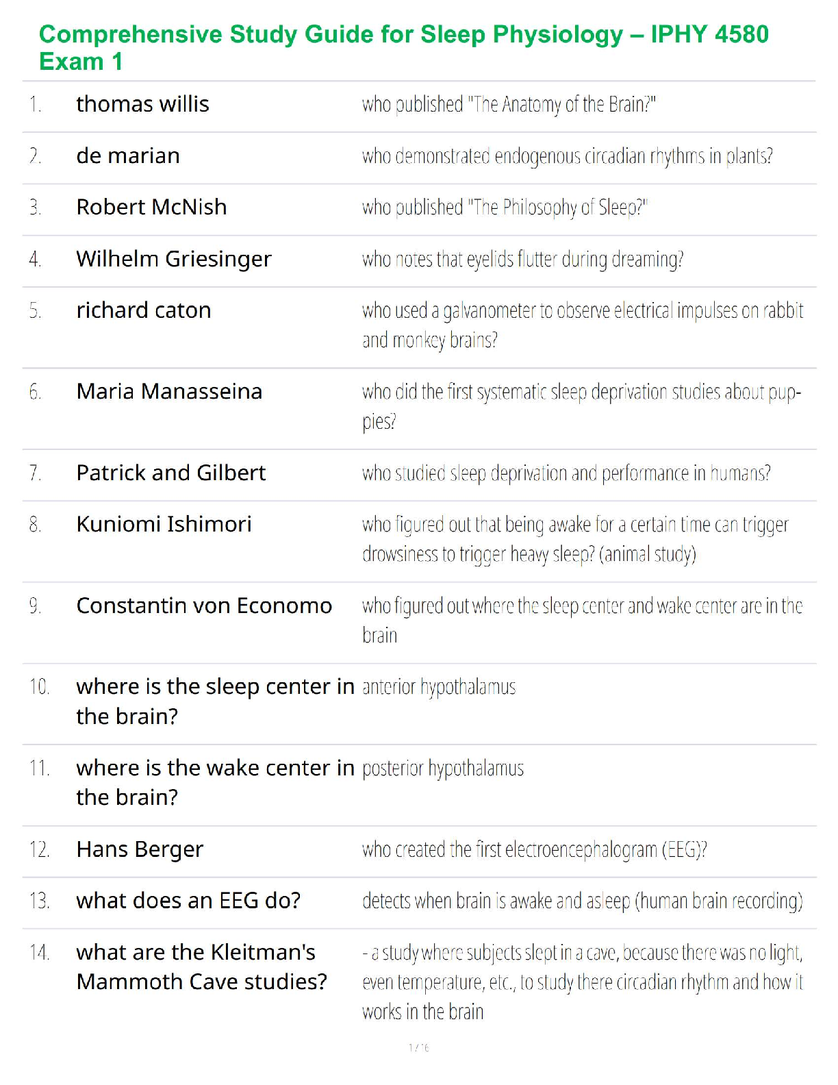 Physiology > STUDY GUIDE > Comprehensive Study Guide for Sleep Physiology – IPHY 4580 Exam 1 (All)