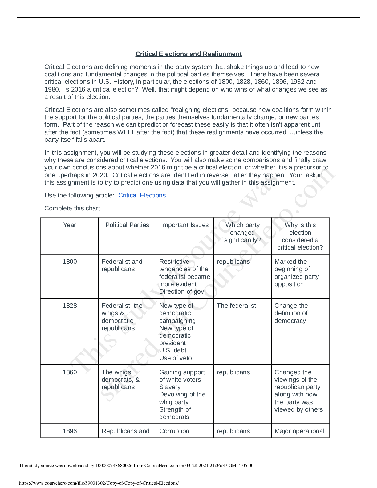 Physiology > DISCUSSION POST > Chapman High School, Inman - AP GOPO 123Copy_of_Copy_of_Critical_Elections (All)
