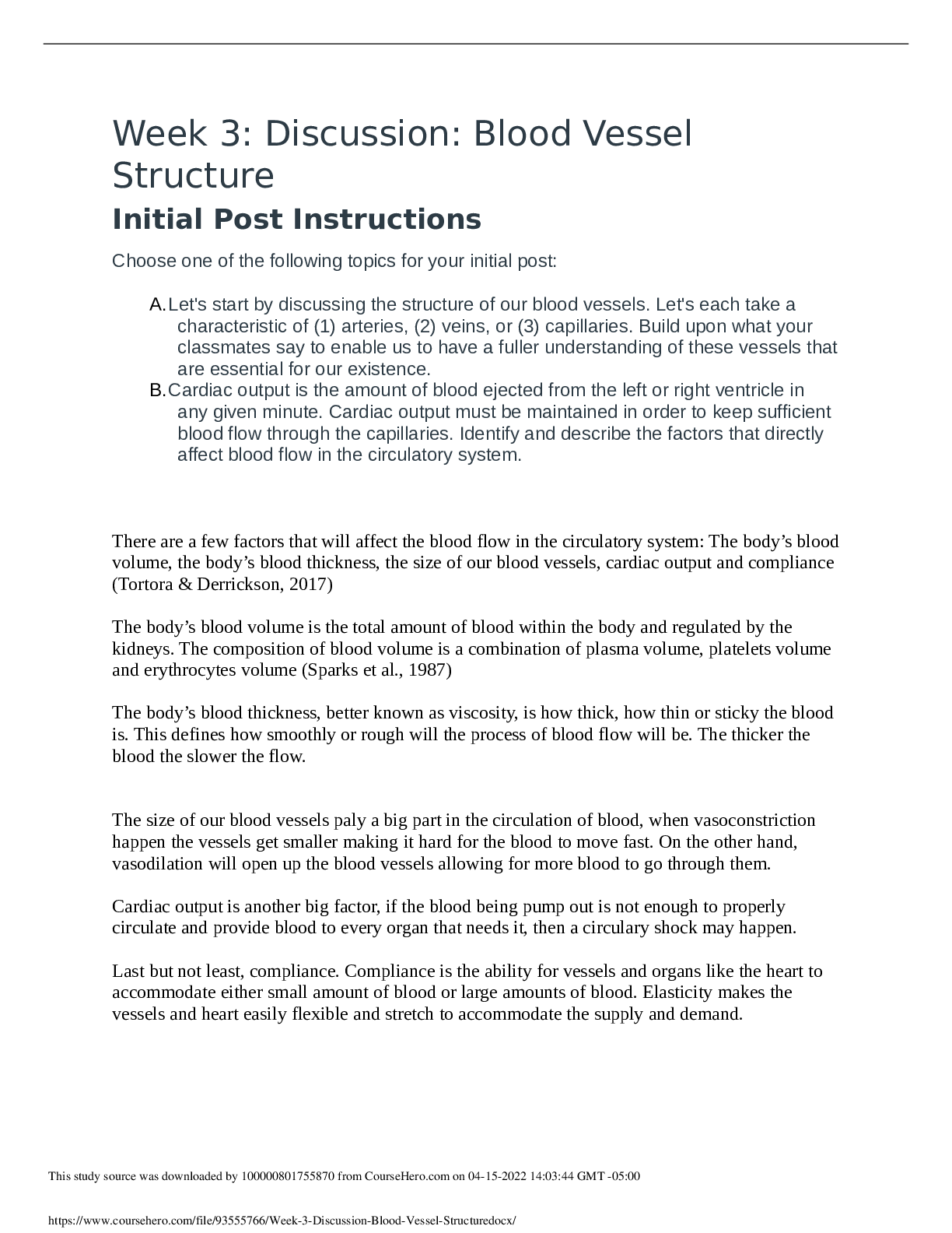 Physiology > DISCUSSION POST > BIOS 255 Week 3 Discussion: Blood Vessel (100% Guaranteed Pass) (All)