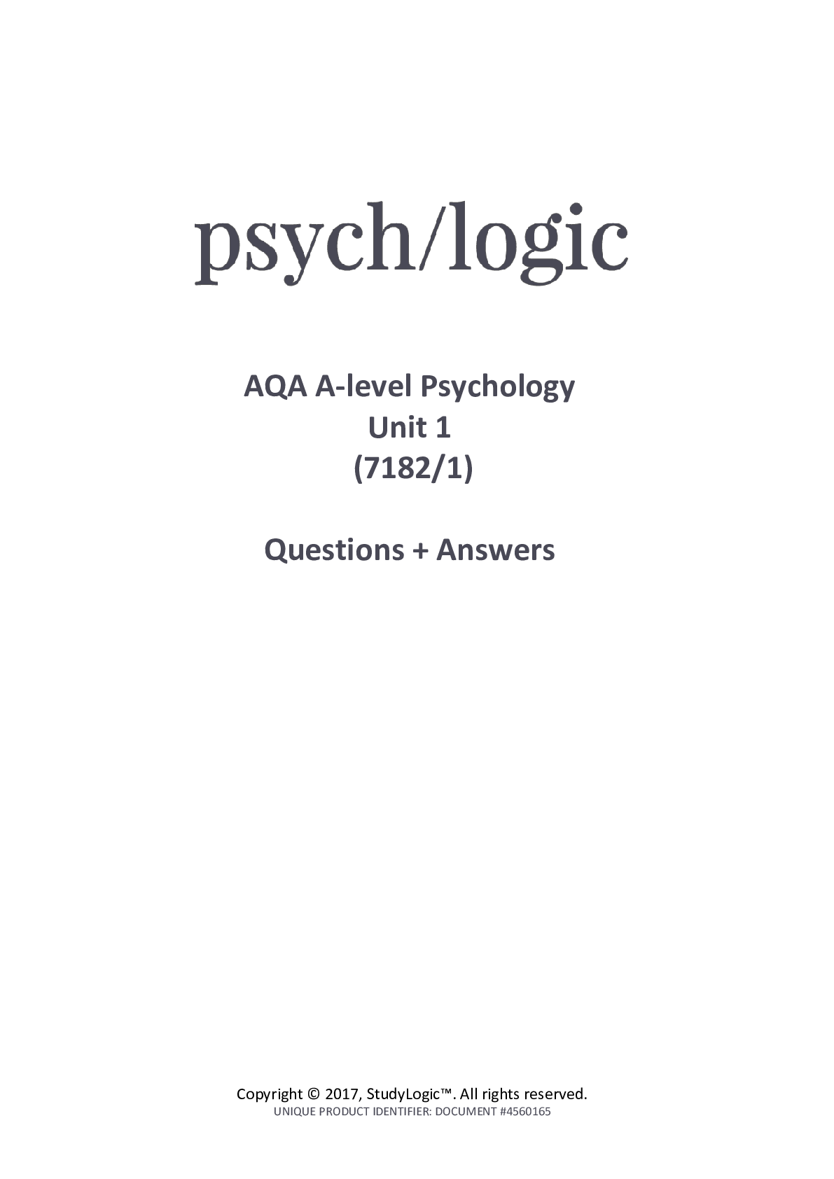 Physiology > QUESTIONS & ANSWERS > AQA A-level Psychology Unit 1 (7182/1) Questions + Answers (All)