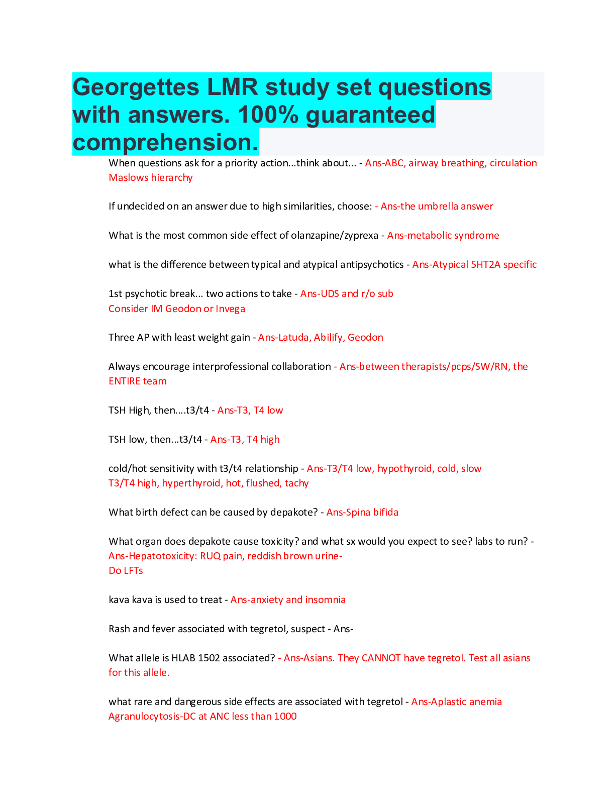 Physiology > QUESTIONS & ANSWERS > Georgettes LMR study set questions with answers. 100% guaranteed comprehension. (All)