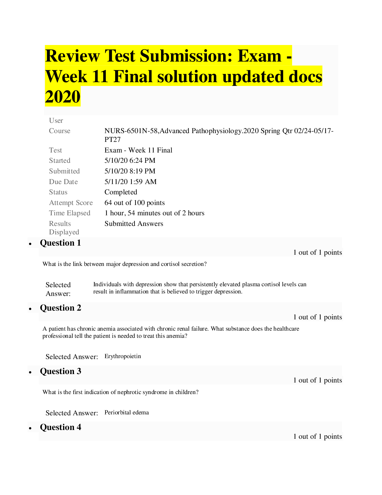 Physiology > QUESTIONS & ANSWERS > Review Test Submission: Exam - Week 11 Final solution updated docs 2020 (All)