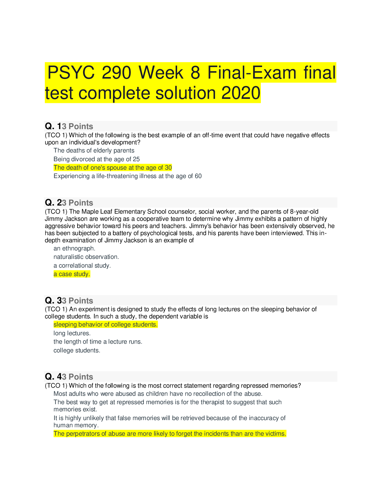 Physiology > QUESTIONS & ANSWERS > PSYC 290 Week 8 Final-Exam final test complete solution 2020 (All)