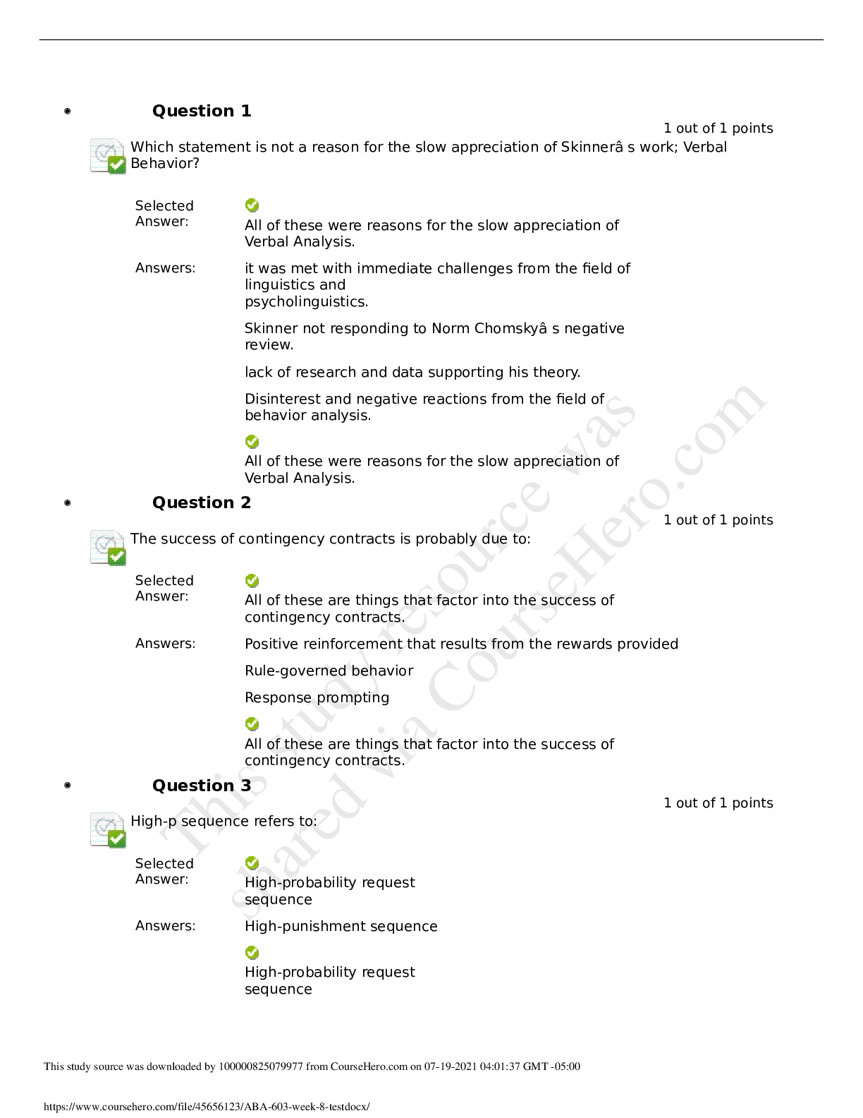 Physiology > EXAM > ABA 603 Week 8 Test Questions and Answers- National University College (All)