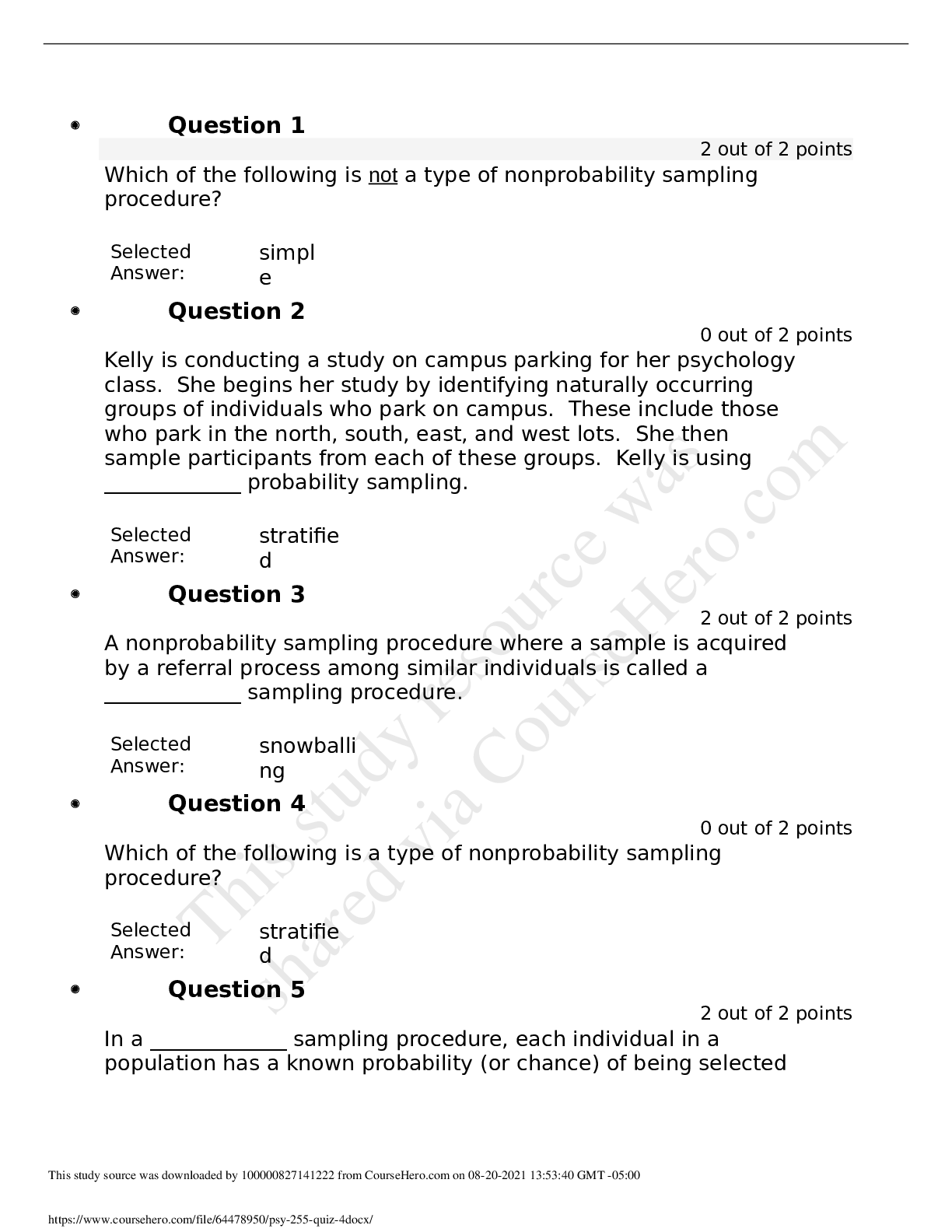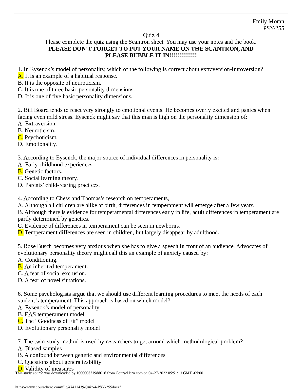 Physiology > QUESTIONS & ANSWERS > PSY-255 Quiz 4 Questions and Answers (All)