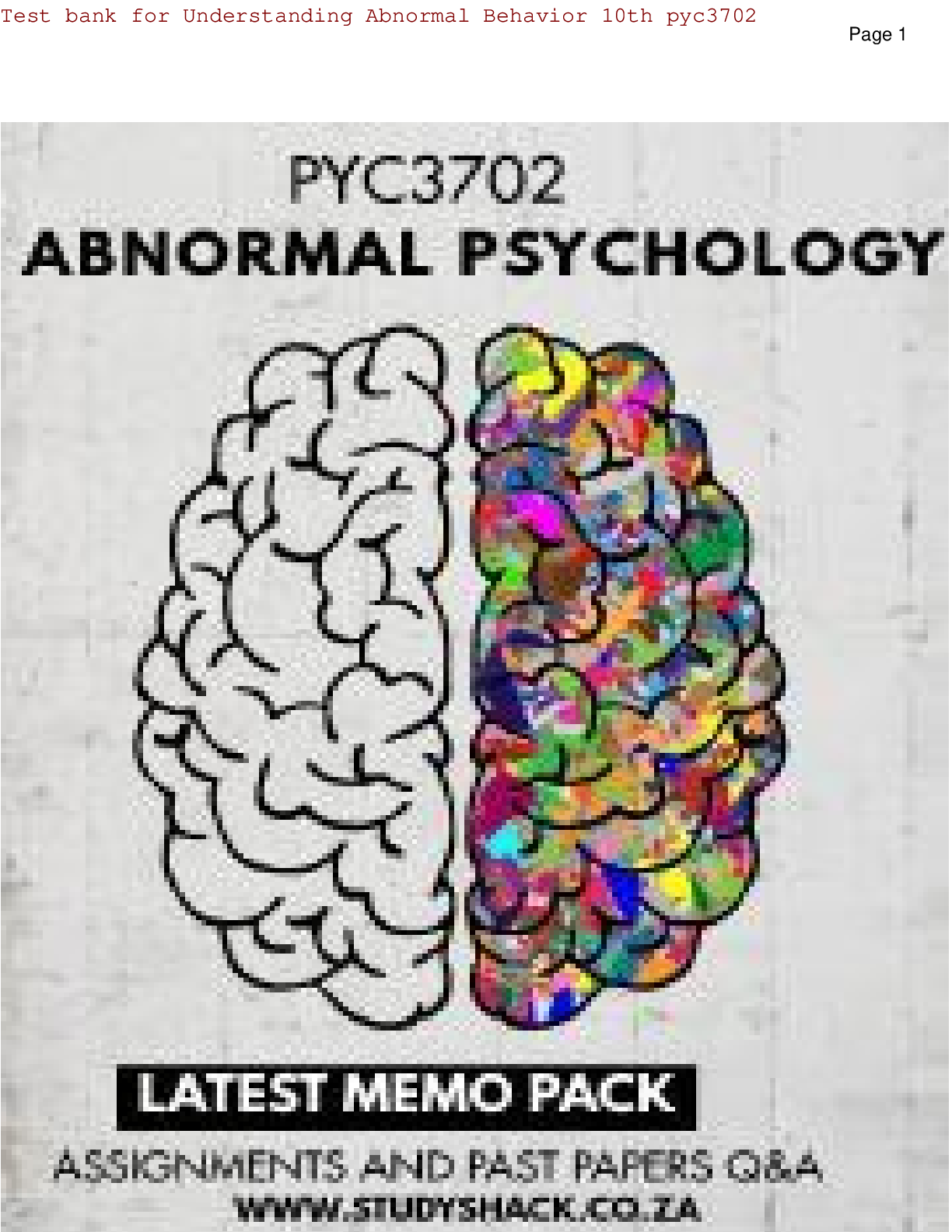 Physiology > TEST BANKS > Test bank for Understanding Abnormal Behavior 10th pyc3702 (Complete Questions and Answers) (All)