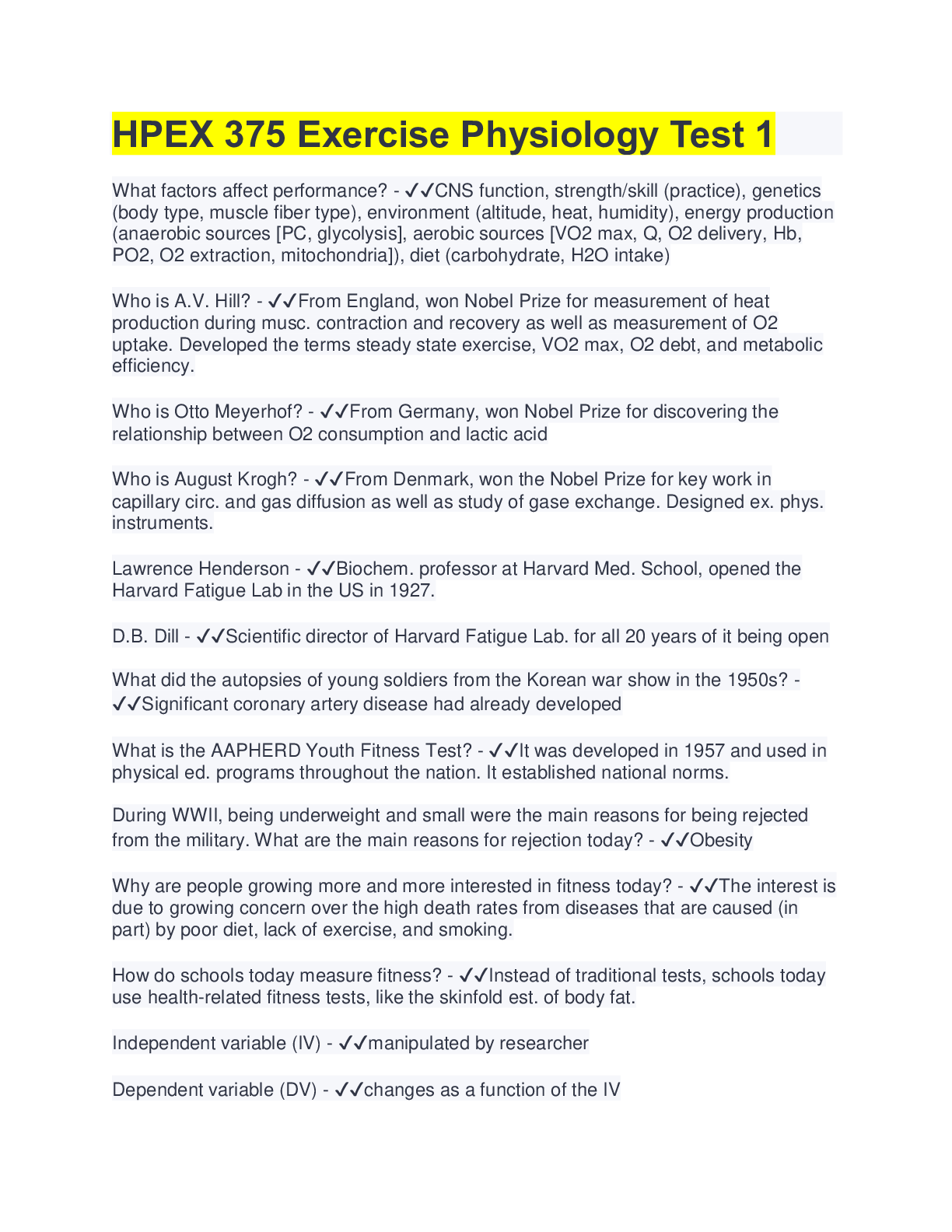 Physiology > QUESTIONS & ANSWERS > HPEX 375 Exercise Physiology Test 1 (All)