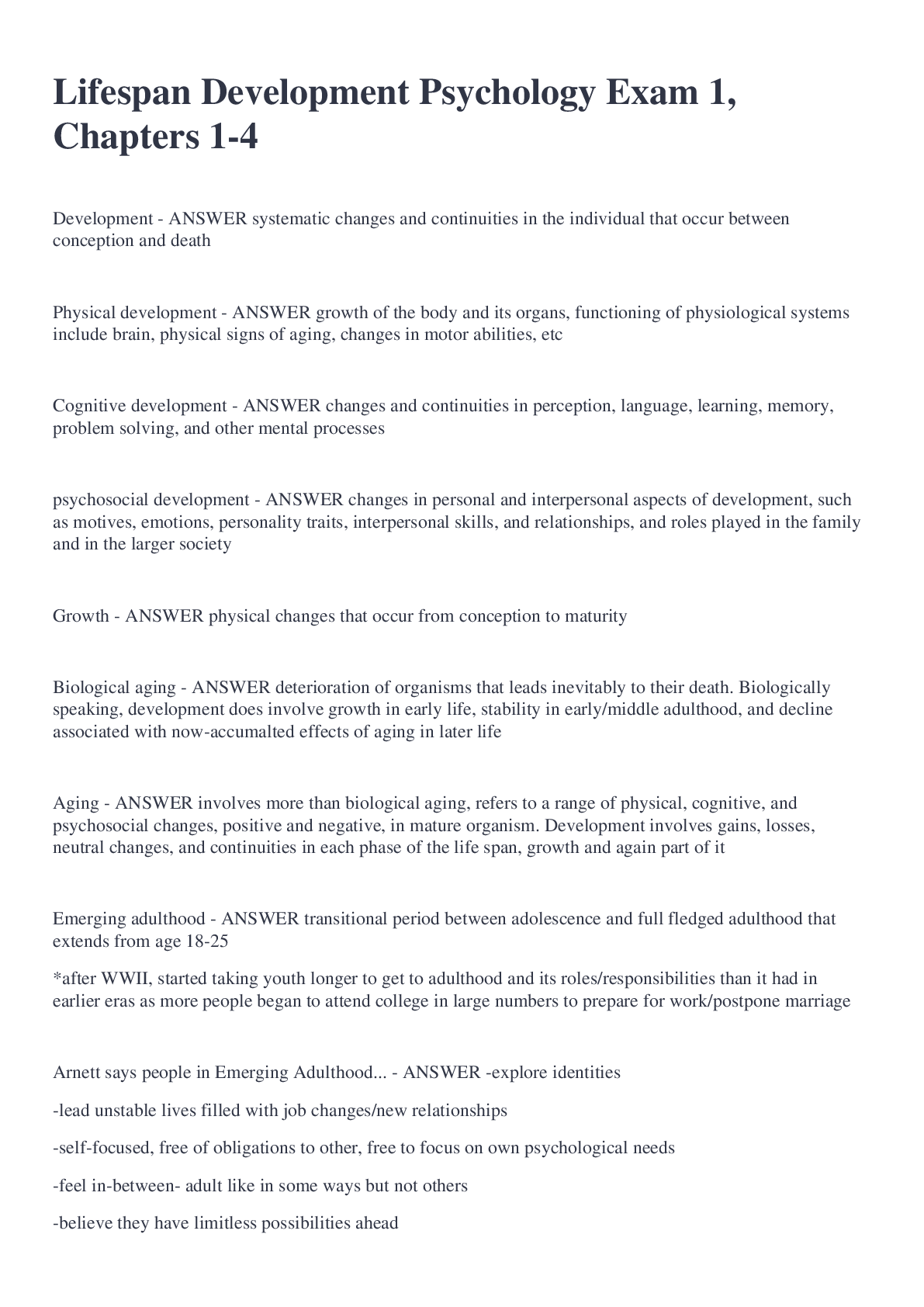 Physiology > EXAM > Lifespan Development Psychology Exam 1, Chapters 1-4 (All)