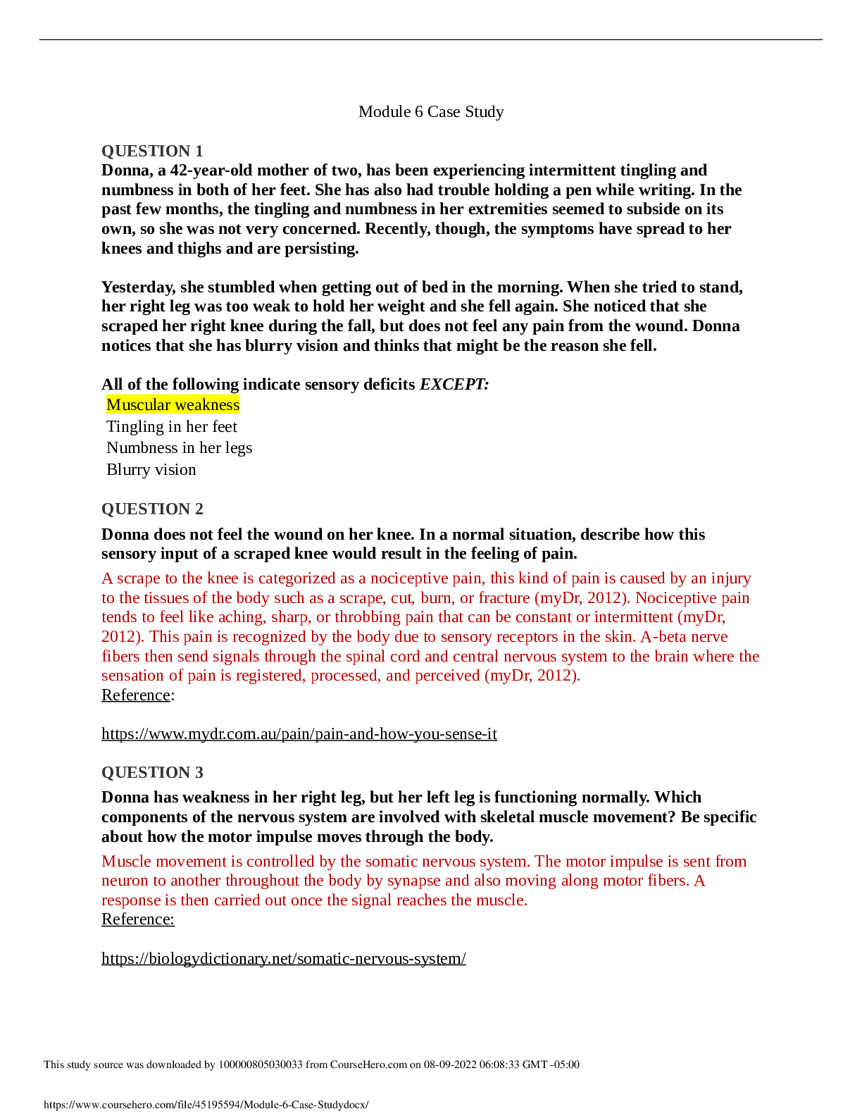 Physiology > EXAM > BSC 2346 A&P Case Study Module 6 Complete Solution (All)