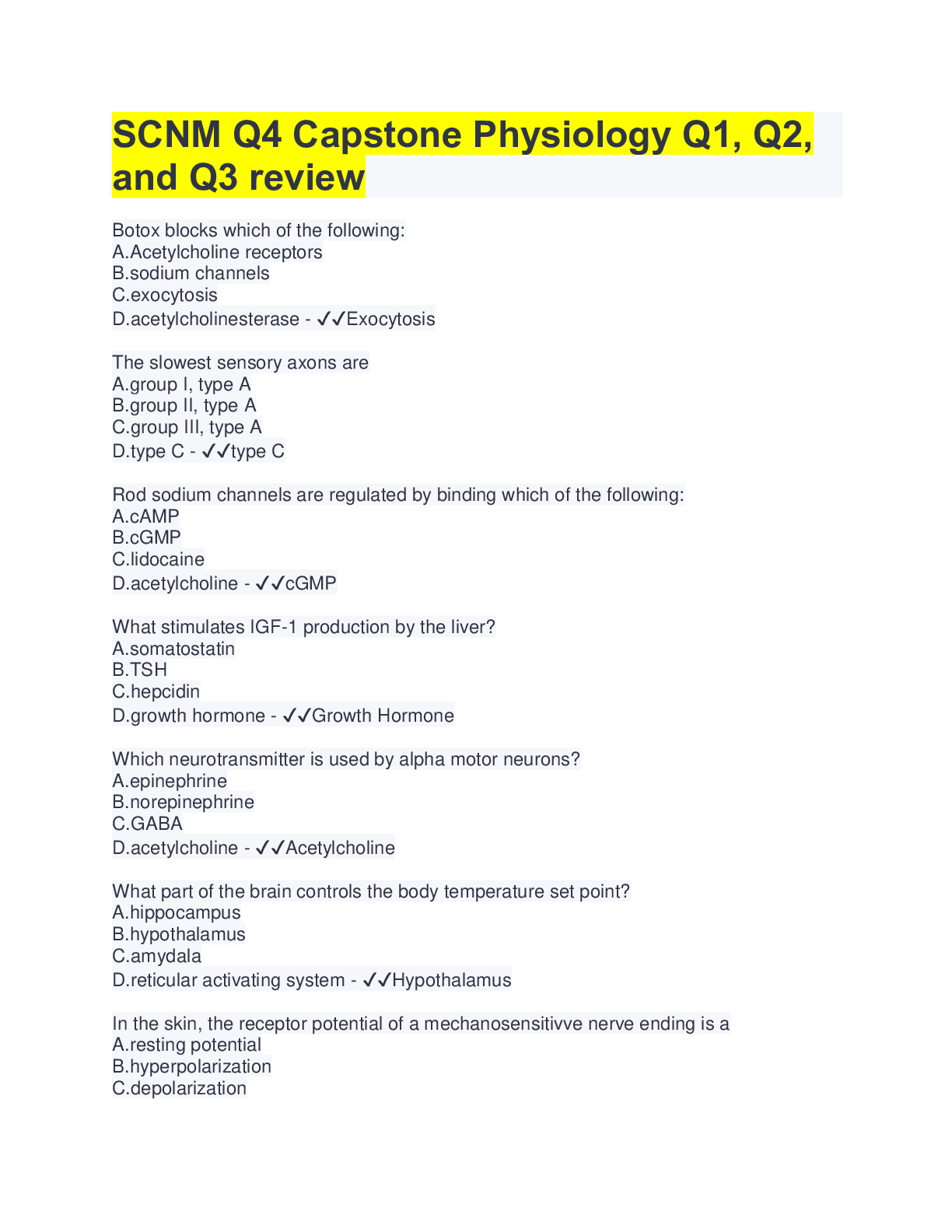 Physiology > EXAM REVIEW > SCNM Q4 Capstone Physiology Q1, Q2, and Q3 review (All)